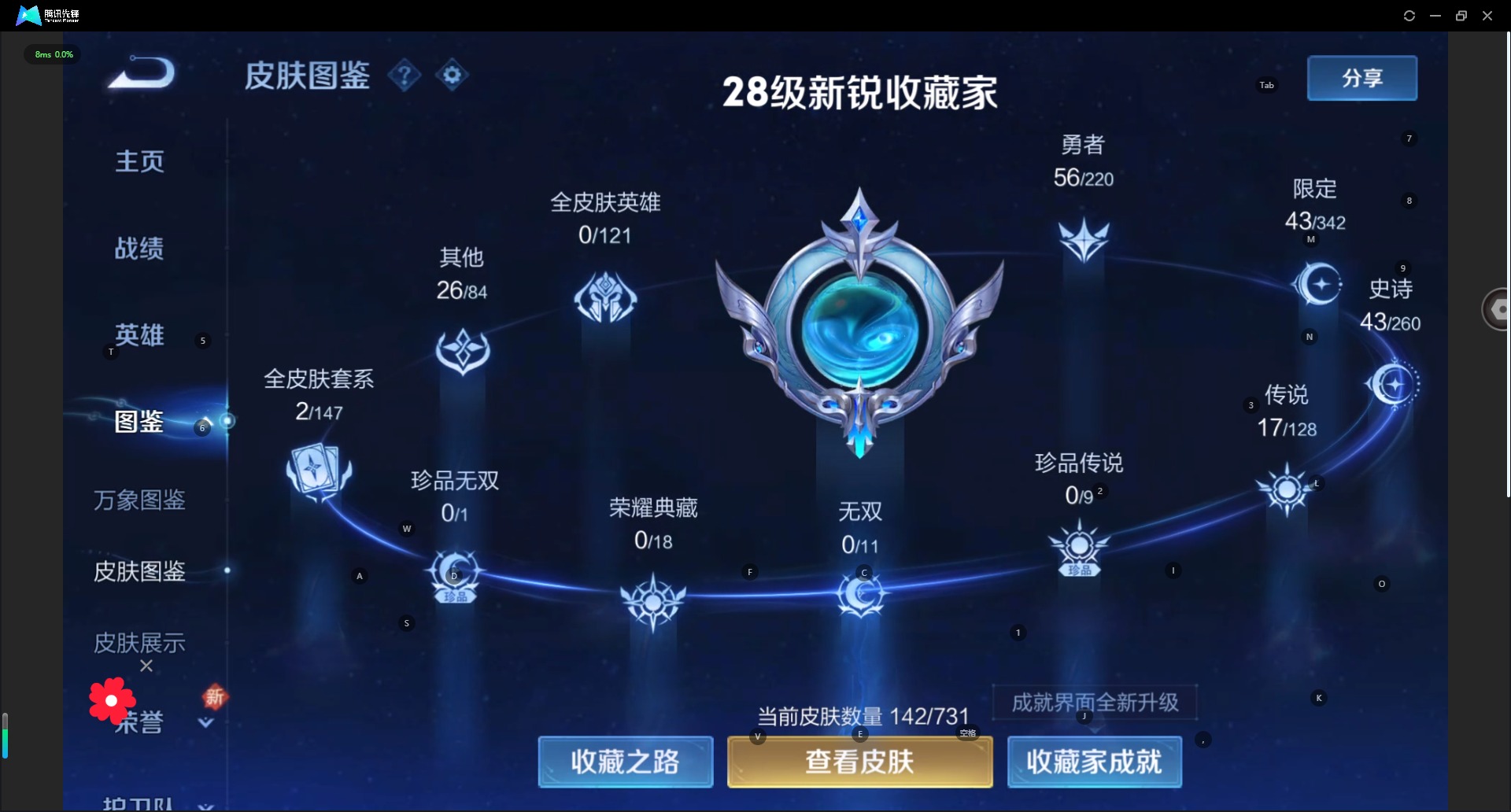 - PX_2057213-贵族等级: V5 英雄数: 47 皮肤数: 30 传说皮: 超时空战士-狄仁杰,云诺千山 限定皮: 鸣野蒿,愿照·山河定