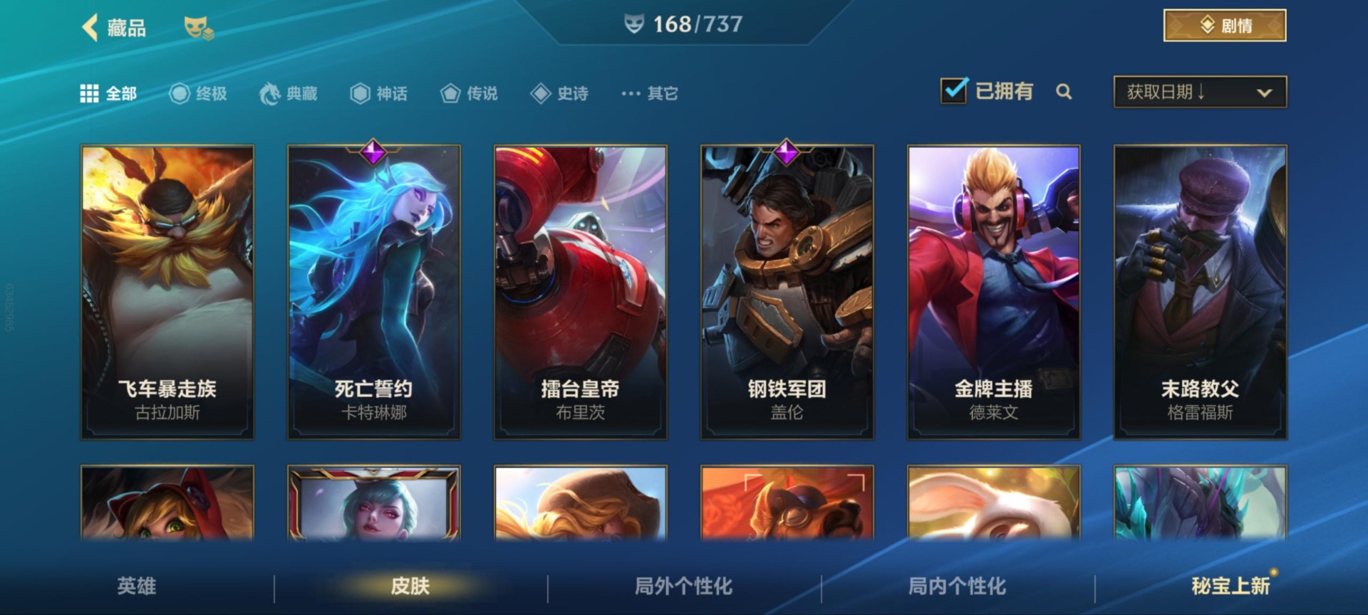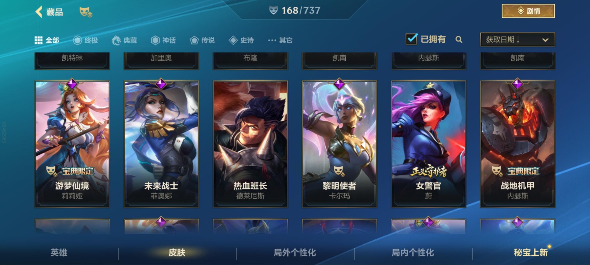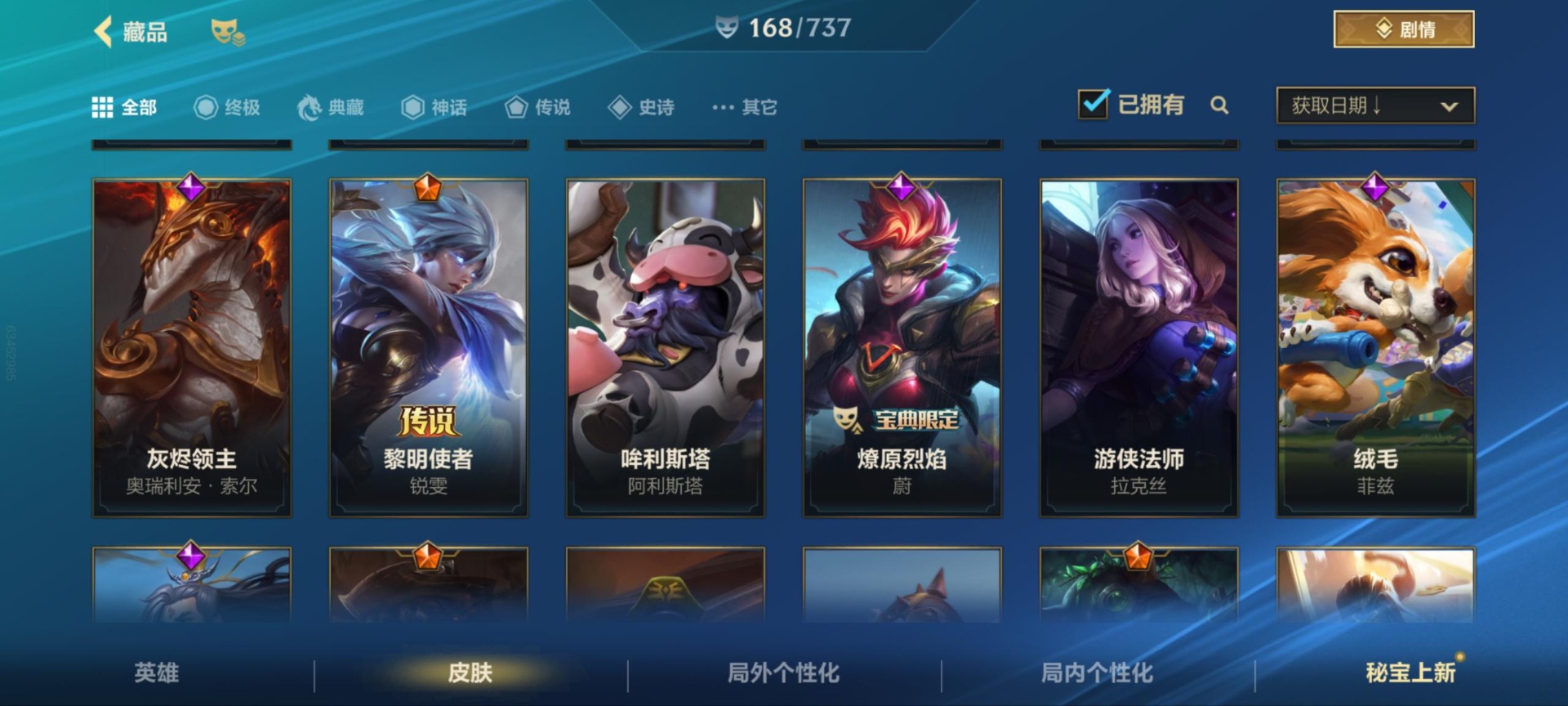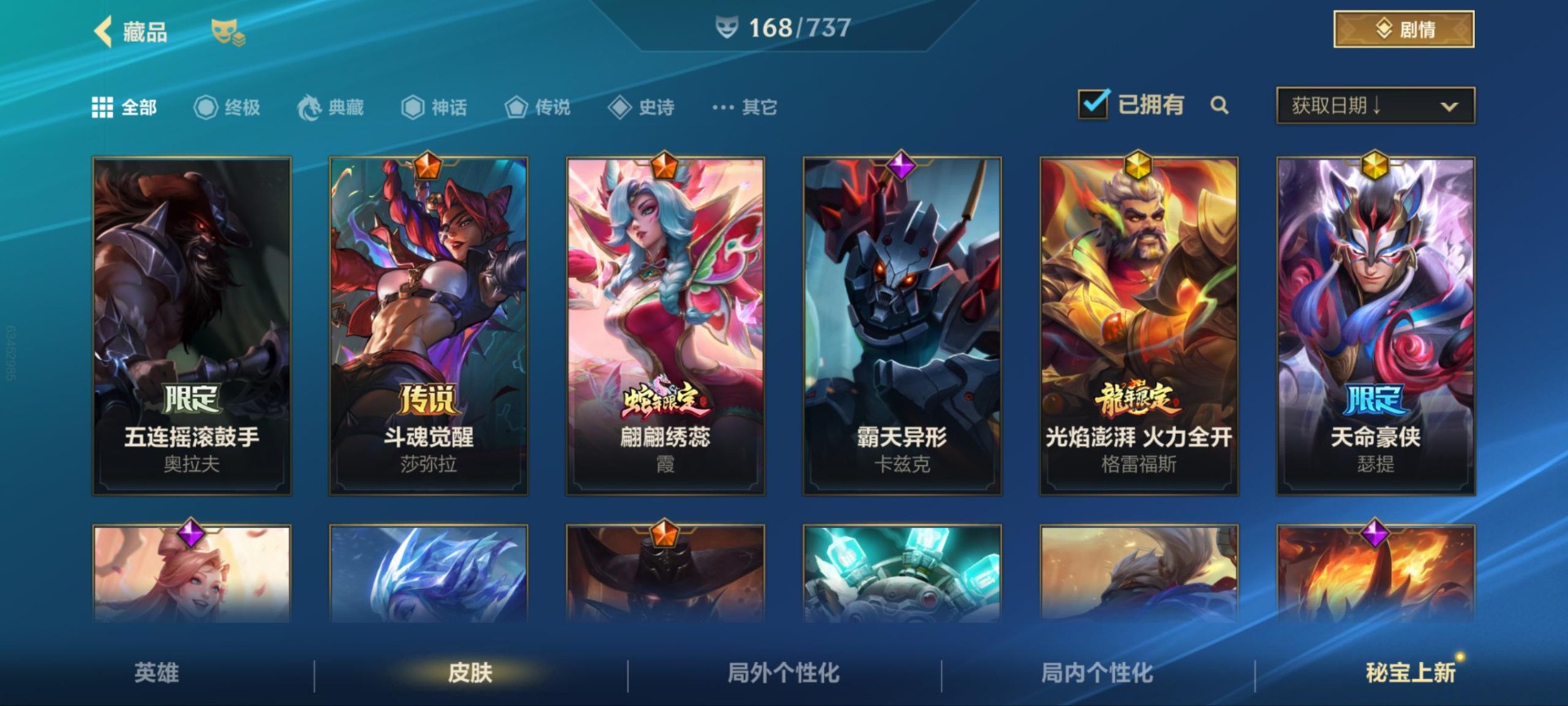 - [11523737]V8 1典藏 12传说 124英雄 219皮肤 可修改实名 优质装备:鸣剑·曳影,黄金狮子座,冠军飞将,末日机甲-孙尚香(绿蚂蚱),地狱火,零号·赤焰,地狱之眼,超时空战士-狄仁杰 珍宝阁皮:万物之道,优雅恋人 限定皮:至尊宝,凤求凰(白切鸡),梅西,武陵仙君(小桃花),时雨天司(水龙头),冰锋战神,游园惊梦,梁祝,天狼绘梦者,李小龙,逐梦之影,永曜之星,辉光之辰,大圣娶亲,引擎之心,冰霜恋舞曲 史诗皮:紫霞仙子,电玩小子(小书包),白龙吟,黄金分割率,特工魅影,千年之狐,真我赫兹(百里守约),冰冠公主,末日机甲-吕布,乱世虎臣,节奏热浪,修罗,摇滚巨星,水果甜心,天才门将,星夜王子,心灵骇客,功夫厨神,德古拉伯爵,暗隐猎兽者,幽灵船长,鬼剑武藏,心灵战警,舞动绿茵,地狱岩魂,纤云弄巧,缤纷独角兽,逐浪之夏,水晶猎龙者,曙光守护者,金属风暴,圣诞狂欢,圣诞恋歌,鹰眼统帅,暗夜贵公子,魅力维加斯,未来纪元-赵云