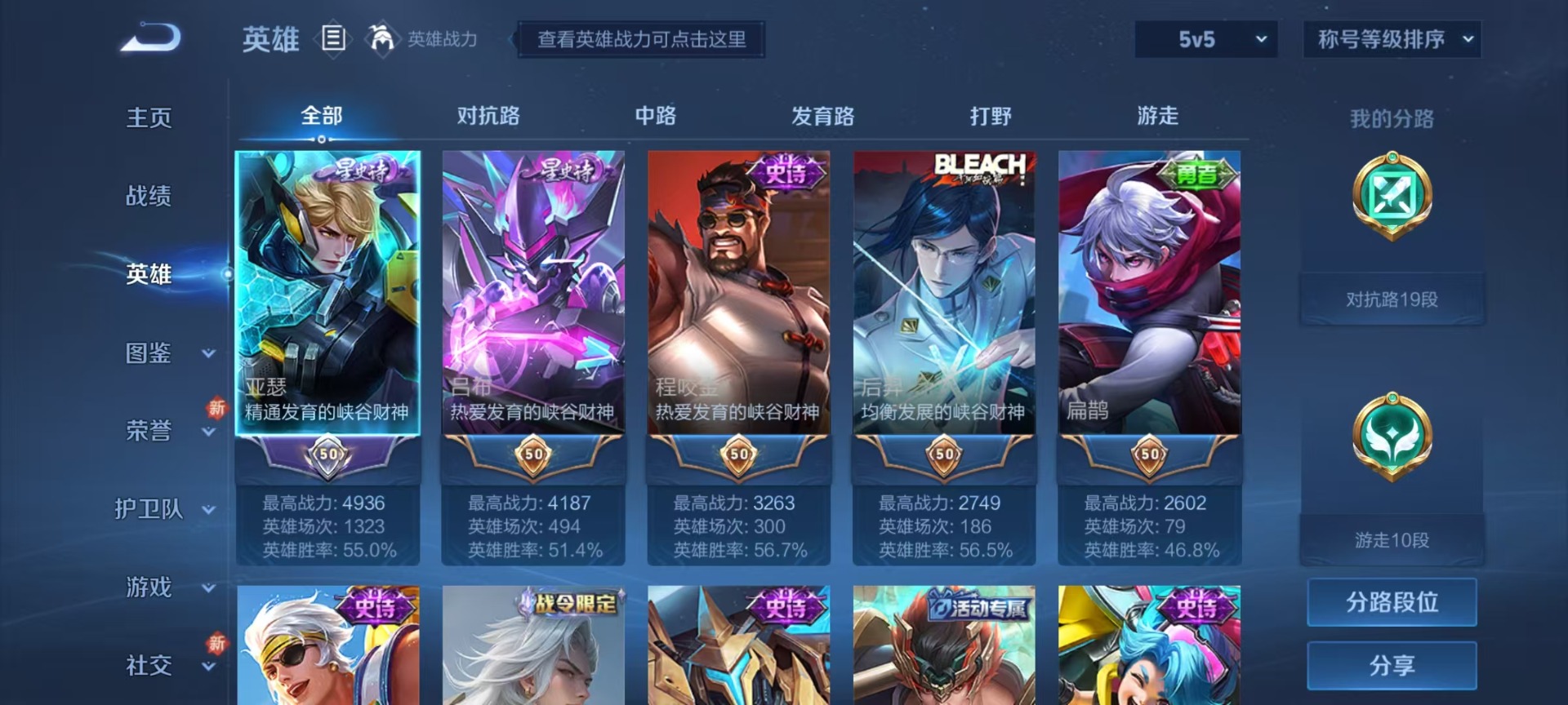 - [11819767]V7 1无双 2珍品传说 10传说 88英雄 99皮肤 可修改实名 优质装备:器灵·螭龙剑,朽木白哉,黑崎一护,地狱火,碎云,妄想实况,澜逐花归海 传说皮:云诺千山,续相思,幻光神枪 限定皮:愿照·九州拓(澜年限),愿照·山河定(司空震年限),傲雪梅枪,诗剑行,降魔,山海·玄木吟(马可年限) 史诗皮:鸭鸭历险记-刘禅,器灵·浮梦炉,绮世丹青,瑰影绮梦,化蝶舞,灵蛊蚀心,龙之律动,藏狐·褐绒,小牛鸭,石田雨龙,百相守梦-周瑜,茶境仙,紫霞仙子,白龙吟,特工魅影,闲日渔趣,偶像歌手,乱世虎臣,水果甜心,星夜王子,德古拉伯爵,天秀·启明,乘风破浪,水晶猎龙者,鹰眼统帅,赏金猎手