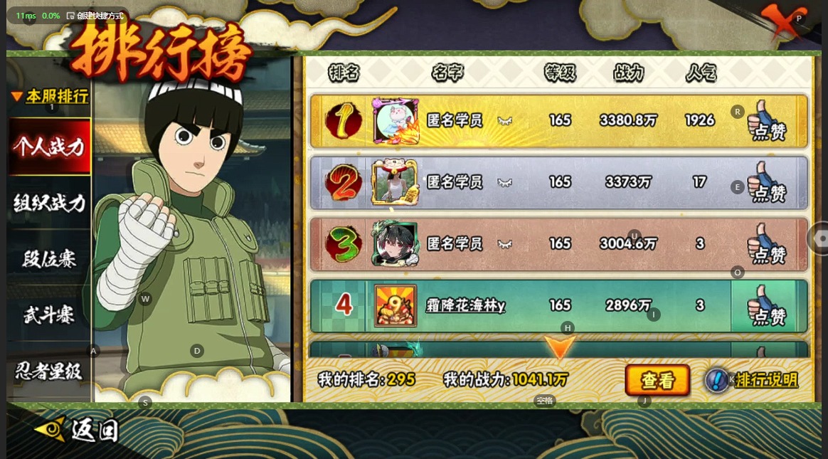 - [11553518]V10 13S忍 28A忍 16通灵 707.7W战力 可二次 可修改实名 优质装备:熊猫,千手柱间「秽土转生」,宇智波鼬「秽土转生」,纲手「百豪」,波风水门「秽土转生」,长门「秽土转生」,“宇智波斑” 「白面具」,宇智波佐助「永恒万花筒」,艾「忍界大战」,漩涡鸣人 「暴怒·第六尾」 S级忍者:自来也 「舞之豪杰」,宇智波鼬 「须佐能乎」,佩恩「天道」,波风水门