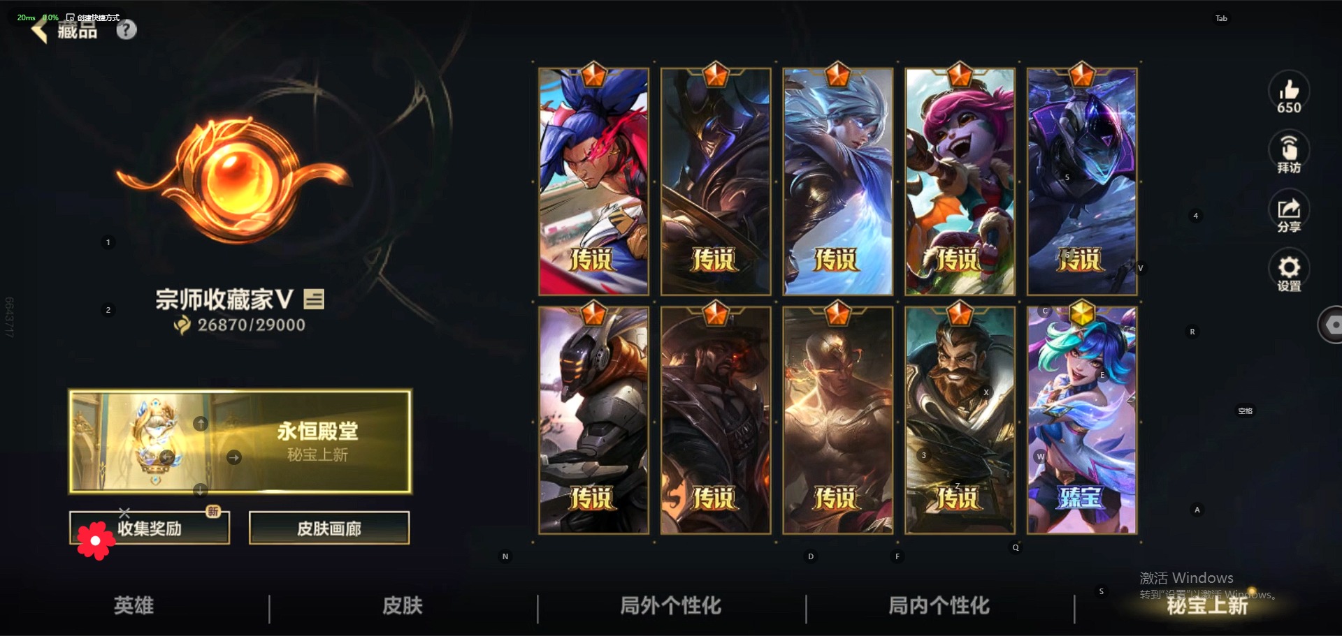 - [12295292]V7 1典藏 1无双 11传说 124英雄 254皮肤 可修改实名 优质装备:弑枪猎影(韩信典藏),花合斗,云鹰飞将(小将军),一念神魔,仲夏夜之梦(大飞蛾),无双飞将,浮生妄,电玩·雷克斯,鹤羽星尊,鹤归松栖(云缨),涂山容容 珍宝阁皮:妄想食味,蔷薇恋人 限定皮:鸣野蒿,时雨天司(水龙头),神威(电光马子),遇见飞天,五谷丰年,梁祝,御风骁将(吕布年限),祈雪灵祝(雪兔子),李小龙,霸王别姬-项羽,默契交锋-花木兰 史诗皮:石田雨龙,织梦人,特工魅影,鹤归松栖(赵怀真),江河有灵,百解令(蒙犽),蒙恬荣光圣徽,冰冠公主,偶像歌手,电玩·爆裂旋风,匿光破解者,暗夜猫娘,猫狗日记-孙策,乱世虎臣,修罗,摇滚巨星,水果甜心,天才门将,星夜王子,心灵骇客,功夫厨神,德古拉伯爵,暗隐猎兽者,幽灵船长,鬼剑武藏,心灵战警,天秀·启明,纤云弄巧,繁星吟游(呼啦呼啦),缤纷独角兽,乘风破浪,逐浪之夏,水晶猎龙者,箭羽风息,金属风暴,原初追逐者,圣诞恋歌,鹰眼统帅,魅力维加斯,无心,未来纪元-赵云