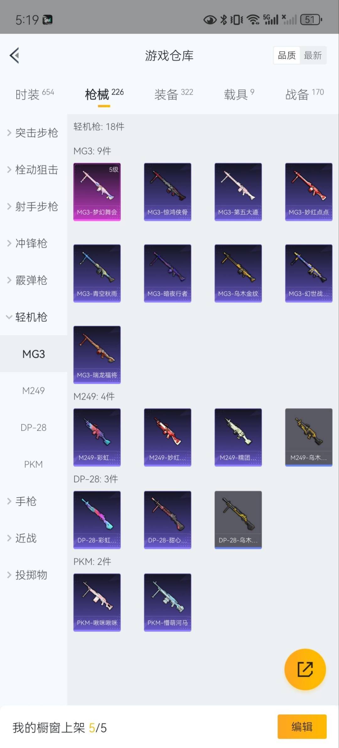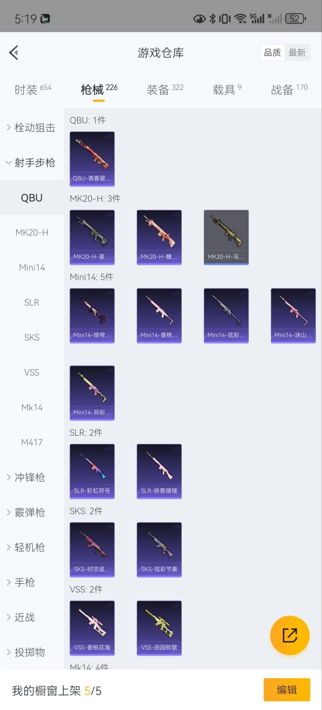 - [12042212]地铁满天赋【特价急出/详情看图】:安卓 手Q-1粉装-4特效枪-4.1w热力值-1王牌印记-86套装-148枪皮【热门品类】:套装-粉红小猪【粉色套装】:粉装-星穹咏叹调【粉色枪皮等级】:Kar98K-巳巳如意(五级),SKS-碧影闪光(七级),Mk14-甜梦熊击(五级),DP-28-豹影疾电(五级)