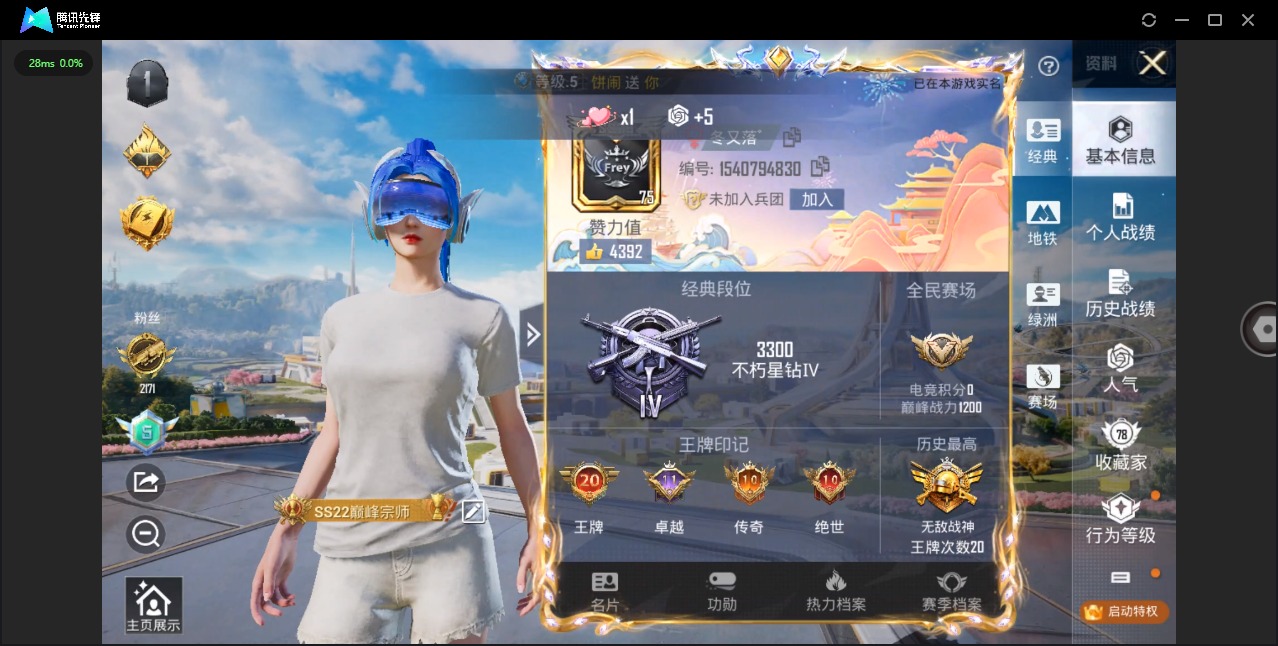 - [12102056]V8 3典藏 10传说 124英雄 255皮肤 可修改实名 优质装备:星空梦想(太空人),幻阙歌(貂蝉典藏),弑枪猎影(韩信典藏),零号·赤焰,淬星耀世,超时空战士-狄仁杰,涂山容容 传说皮:典韦战鼓燎原 珍宝阁皮:万物之道,优雅恋人,蔷薇恋人,玩趣恶龙 限定皮:愿照·岁时盈(虞姬年限),鸣野蒿,凤求凰(白切鸡),傲雪梅枪,时雨天司(水龙头),高山流水,齐天大圣,游园惊梦,梁祝,御风骁将(吕布年限),李小龙,孙行者,乒乒小将 史诗皮:器灵·浮梦炉,星界战将,谪仙醉月,石田雨龙,茶境仙,破空之剑,琥珀纪元伽罗,蔬乡物语(鲁班七号),百相守梦-百里守约,百相守梦-黄忠,紫霞仙子,苍穹之光,特工魅影,千年之狐,江河有灵,匿光侦查者,高渐离燃音魔法,蒙恬荣光圣徽,冰冠公主,青蛇,偶像歌手,晚萤,百相守梦(刘备),暗夜猫娘,龙骑士(小龙虾),末日机甲-吕布,猫狗日记-孙策,乱世虎臣,节奏热浪,修罗,女仆咖啡,水果甜心,绅士熊喵,星夜王子,心灵骇客,功夫厨神,德古拉伯爵,暗隐猎兽者,幽灵船长,鬼剑武藏,乐园奇幻夜,天秀·启明,舞动绿茵,纤云弄巧,乘风破浪,逐浪之夏,水晶猎龙者,曙光守护者,热力回旋,唤灵魅影,金属风暴,原初追逐者,圣诞狂欢,圣诞恋歌,鹰眼统帅,魅力维加斯,黎明之约,未来纪元-赵云