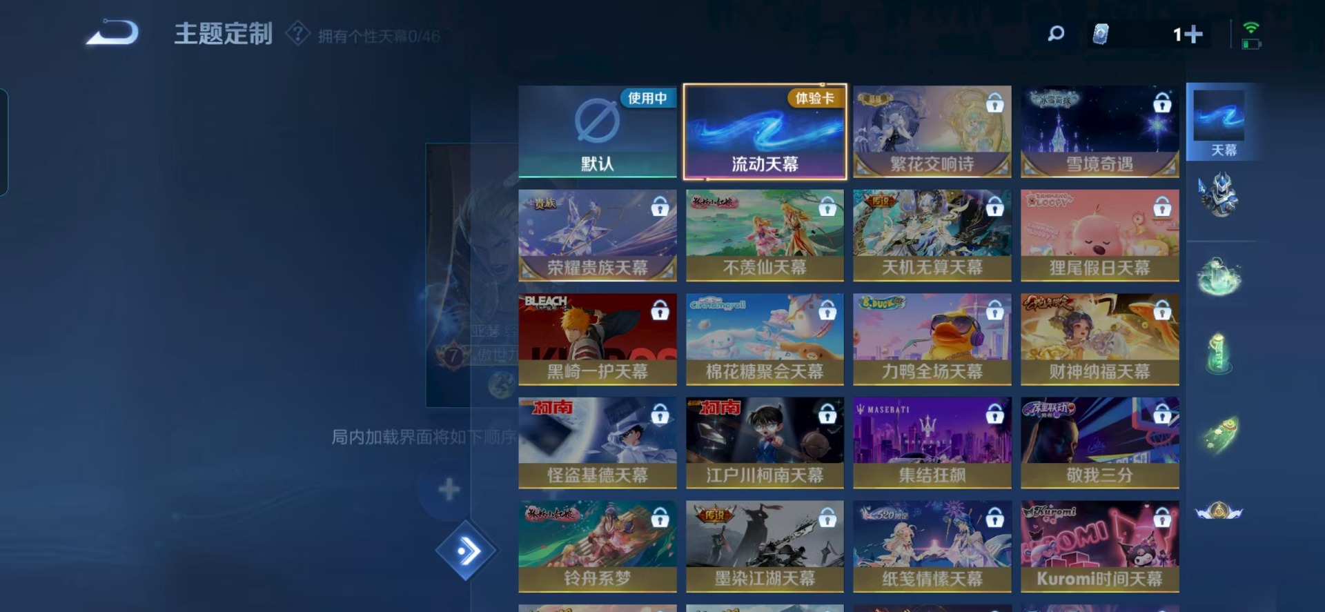 夏侯惇朔风刀,老夫子醍醐杖,沈梦溪星空之诺,沈梦溪大漠名商,盾山御銮,苏烈千军破阵,典韦穷奇,典韦蓝屏警告,达摩沙漠行僧,牛魔御旌,鲁班七号狮舞东方,兰陵王金庭之子,裴擒虎擒涛扼浪,鲁班大师探海日志,明世隐疑决卦,蒙犽狂想玩偶喵,鬼谷子原初探秘者,张良古海寻踪,女娲朔望之晖,桑启海盐诗旅,狄仁杰万华元夜,芈月重明,程咬金演武夺筹,李元芳银河之约,李元芳云中旅人,弈星混沌棋,米莱狄御霄,钟馗神迹守卫,钟馗驱傩正仪,狂铁御狮