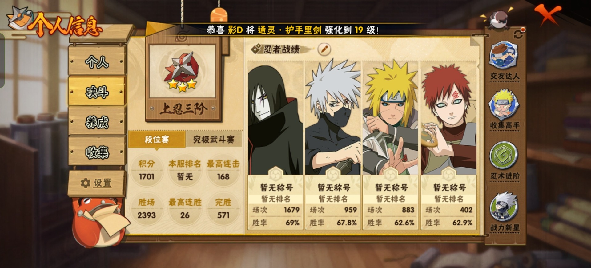 [11930016]V5 4S忍 15A忍 12通灵 370W战力 可二次 可修改实名 优质装备:纲手「百豪」 S级忍者:自来也 「舞之豪杰」,宇智波鼬 「须佐能乎」,波风水门1