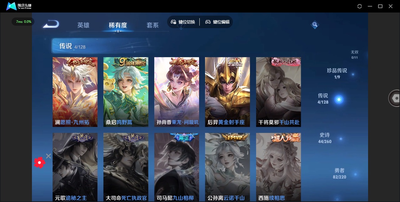 - [11824265]V6 3传说 112英雄 144皮肤 可修改实名 优质装备:地狱火 传说皮:云诺千山 珍宝阁皮:蔷薇恋人 限定皮:逐霄战戟,鸣野蒿,魔法小厨娘,高山流水,五谷丰年,游园惊梦,李小龙,逐梦之影,如梦令-后羿,孙行者,引擎之心,美猴王 史诗皮:赞萌露比,苍鳞隐世,化蝶舞,龙之律动,石田雨龙,琥珀纪元伽罗,百相守梦-黄忠,守夜人,江河有灵,雪夜绮愿(周瑜),百解令(蒙犽),冰冠公主,末日机甲-吕布,猫狗日记-大乔,时之恋人-孙尚香,乱世虎臣,水果甜心,星夜王子,心灵骇客,功夫厨神,暗隐猎兽者,纤云弄巧,拒霜思,缤纷独角兽,乘风破浪,逐浪之夏,曙光守护者,暗夜贵公子,魅力维加斯,无心