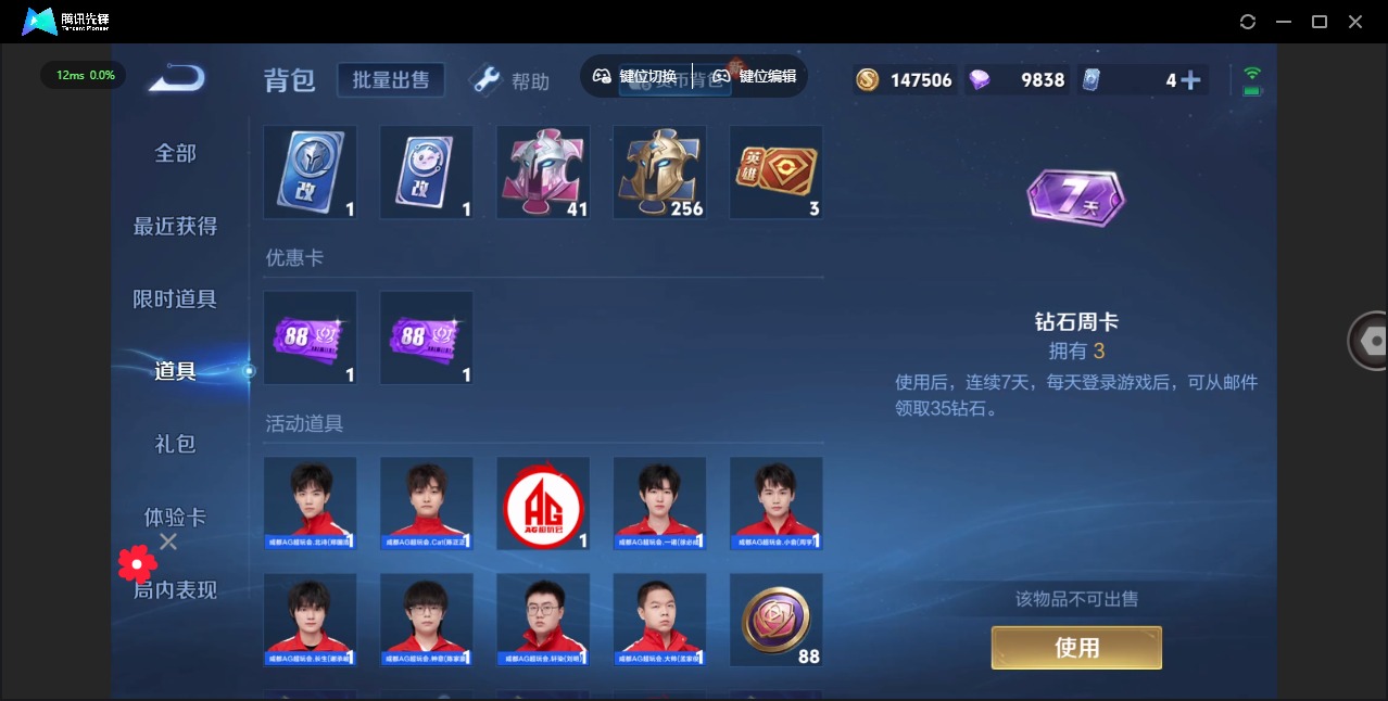 - [11609205]总资产:144 1干员外观 4传说枪械 高级安全箱(9.17到期) 可二次 可修改实名 烽火地带段位:钻石 全面战场段位:无段位 哈夫币:99.114 传说武器皮肤:CAR-15突击步枪-阿米娅,复合弓-黑-天际线,勇士冲锋枪-能天使-午夜邮差,725双管霰弹枪-送葬人-无题密令 史诗武器皮肤:AKM突击步枪-林中猎手,M16A4突击步枪-竞赛选手,SVD狙击步枪-荒野求生,M1014霰弹枪-林中猎手,SV-98狙击步枪-林中猎手,PSG-1射手步枪-无垢,SV-98狙击步枪-囚徒,腾龙突击步枪-无垢,MP7冲锋枪-无垢,Vector冲锋枪-阿萨拉文明 干员外观:蜂医-送葬人·无题密令(S5)