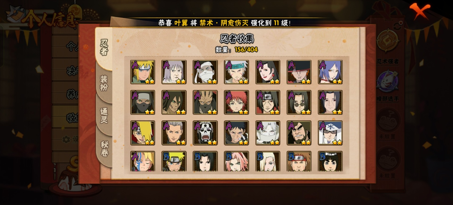 - [11608279]V10 15S忍 34A忍 16通灵 888.9W战力 可二次 可修改实名 优质装备:宇智波鼬「秽土转生」,宇智波斑「秽土转生」,千手扉间「秽土转生」,波风水门「秽土转生」,猿飞日斩「秽土转生」,宇智波带土 「忍界大战」,“宇智波斑” 「白面具」,漩涡鸣人 「九喇嘛连结」 S级忍者:自来也 「舞之豪杰」,宇智波鼬 「须佐能乎」,佩恩「天道」,波风水门,大蛇丸,自来也