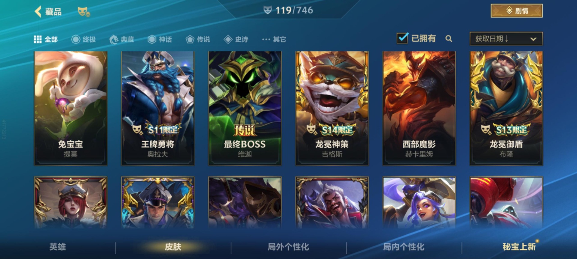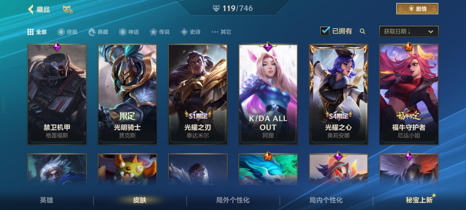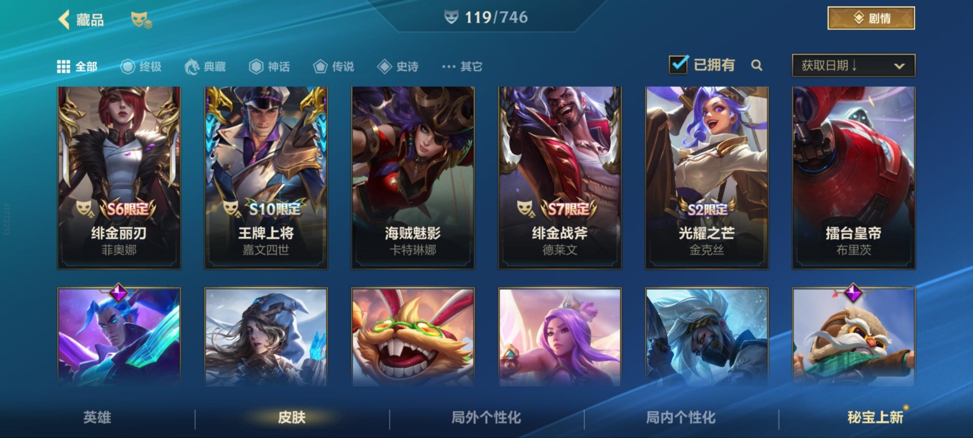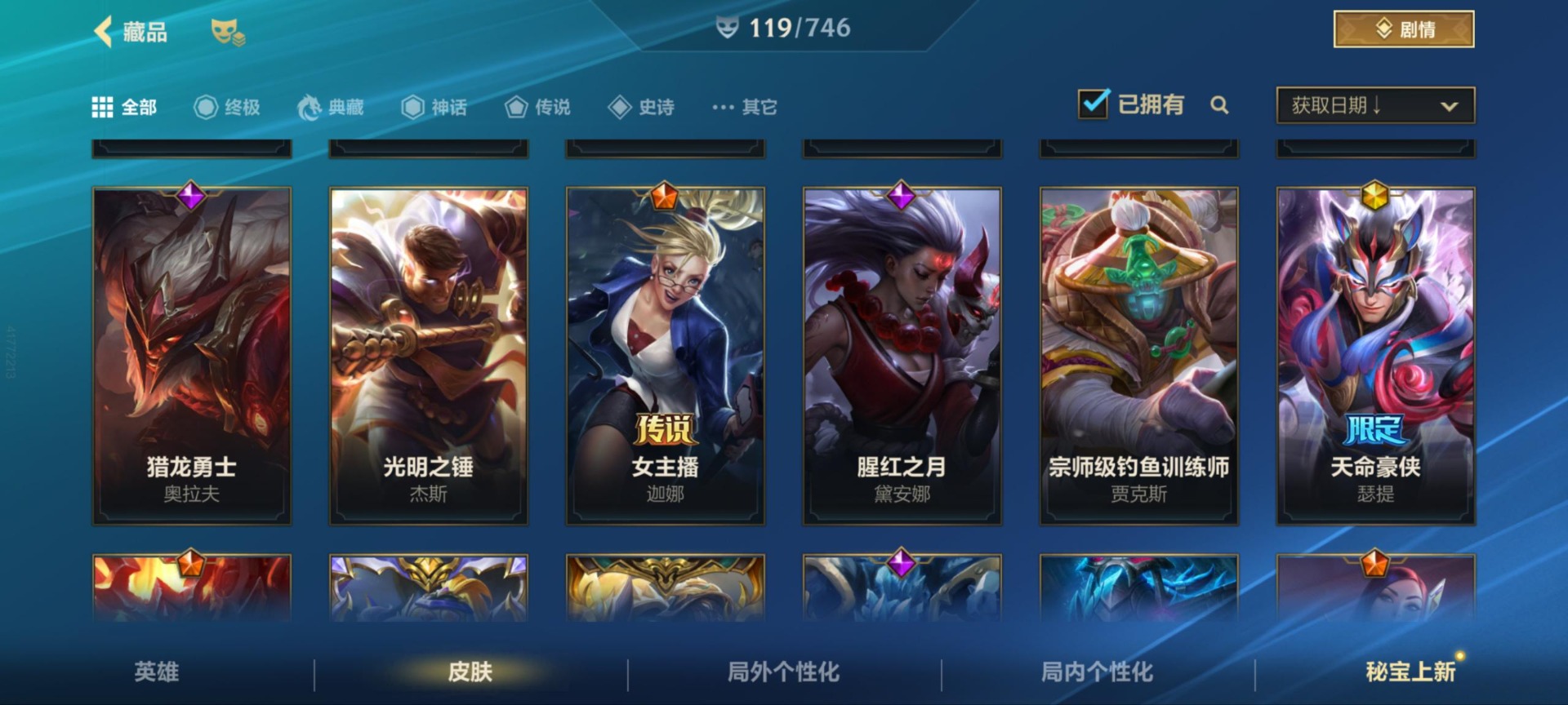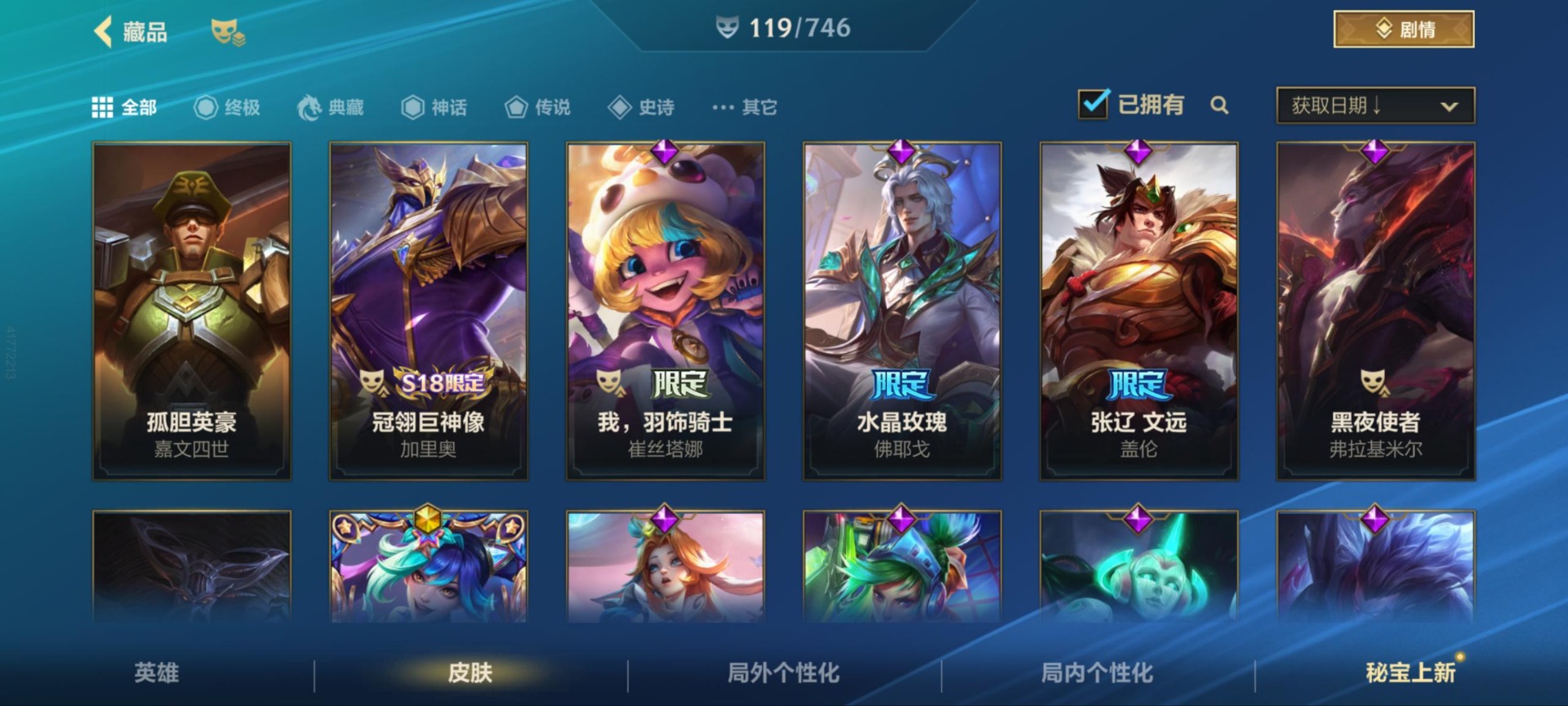 - [11608813]V7 1典藏 3传说 124英雄 274皮肤 可修改实名 优质装备:神鉴启示录,炽阳神光 珍宝阁皮:万物之道,蔷薇恋人 限定皮:愿照·岁时盈(虞姬年限),逐霄战戟,鸣野蒿,白晶晶,玄嵩(庄周年限),遇见飞天,五谷丰年,冰锋战神,梁祝,李小龙,霸王别姬-虞姬 史诗皮:器灵·浮梦炉,星界战将,芈月浮光幕影,蔬乡物语(鲁班七号),百相守梦-百里守约,紫霞仙子,黄金分割率,魅语,蒙恬荣光圣徽,冰冠公主,偶像歌手,白蛇,龙骑士(小龙虾),乱世虎臣,节奏热浪,女仆咖啡,水果甜心,绅士熊喵,星夜王子,心灵骇客,德古拉伯爵,暗隐猎兽者,鬼剑武藏,心灵战警,舞动绿茵,地狱岩魂,纤云弄巧,繁星吟游(呼啦呼啦),拒霜思,缤纷独角兽,乘风破浪,逐浪之夏,曙光守护者,箭羽风息,金属风暴,原初追逐者,圣诞狂欢,圣诞恋歌,鹰眼统帅,王者之锤,暗夜贵公子,魅力维加斯,黎明之约,未来纪元-赵云