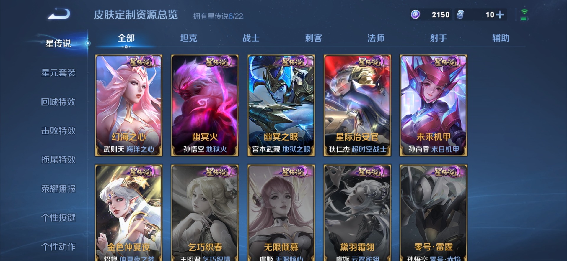 金蝉唐三藏,夏侯惇匿光决锋者,老夫子圣诞老人,廉颇寅虎·御盾,伽罗天狼溯光者,赵云百木心枪,赵云龙胆,孙膑天狼运算者,孙膑寅虎·展翼,干将莫邪冰霜恋舞曲,孙尚香异界灵契,不知火舞绯月行,鲁班七号乒乒小将,吕布御风骁将,露娜启示之音,镜匿光追影者,公孙离祈雪灵祝,公孙离玉兔公主,裴擒虎李小龙,裴擒虎寅虎·赤拳,上官婉儿梁祝,李白诗剑行,花木兰默契交锋,马可波罗逐梦之星,马可波罗山海·玄木吟,马可波罗深海之息,西施至美·乘鲤谣,桑启鸣野蒿,猪八戒猪悟能,孙悟空孙行者,孙悟空大圣娶亲,芈月白晶晶,孙悟空美猴王,马超神威,云中君时之祈愿,韩信傲雪梅枪,韩信飞衡,韩信逐梦之影,墨子降魔,蔡文姬愿照·福禄聚,澜愿照·九州拓,虞姬霸王别姬,娜可露露前尘镜,妲己热情桑巴,嫦娥如梦令,关羽冰锋战神