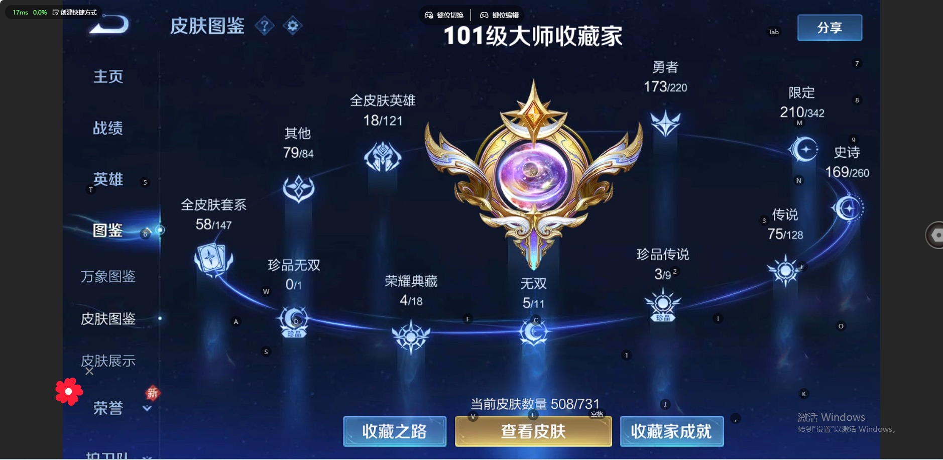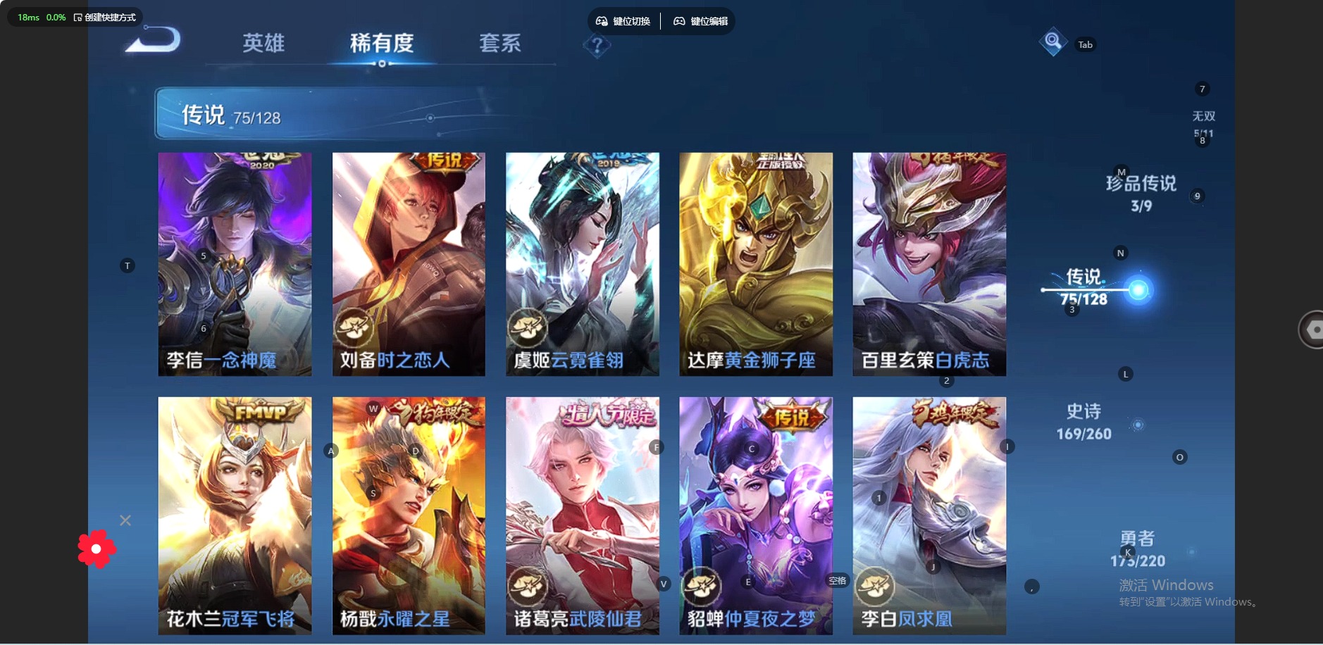 - PX_2095053-实名: 可修改 贵族等级: V5 英雄数: 124 皮肤数: 138 星传说: 星际治安官 传说皮: 黄金白羊座,超时空战士-狄仁杰,澜逐花归海,典韦战鼓燎原,云诺千山 限定皮: 鸣野蒿,陌上桑,愿照·九州拓