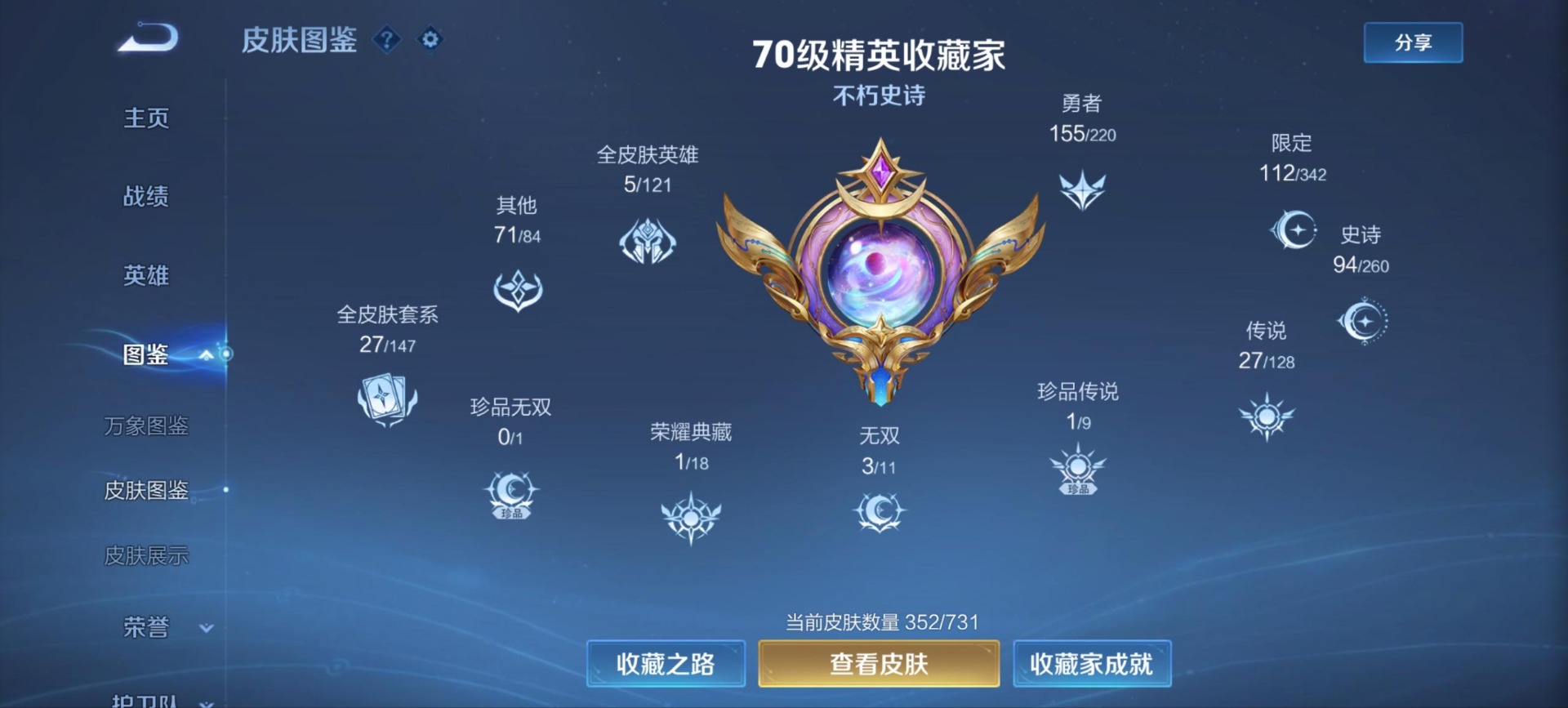 - [11864067]V7 1典藏 1珍品传说 7传说 102英雄 113皮肤 可修改实名 优质装备:拾光映像(瑶典藏),大耳狗之梦,一念神魔,游龙清影(小青龙),涂山容容 传说皮:云诺千山,续相思 限定皮:愿照·众生和(妲己年限),鸣野蒿,山海·碧波行(瑶年限),至美·乘鲤谣,祈雪灵祝(雪兔子),蜜橘之夏,时之奇旅-妲己 史诗皮:赞萌露比,鸭鸭历险记-刘禅,器灵·浮梦炉,化蝶舞,龙之律动,雪豹·霜爪,百相守梦-周瑜,幻珠鲛人,破空之剑,涂山红红,百相守梦-百里守约,百相守梦-黄忠,织梦人,黄金分割率,千年之狐,真我赫兹(百里守约),无限星赏官,青蛇,偶像歌手,白蛇,末日机甲-吕布,女仆咖啡,水果甜心,绅士熊喵,心灵骇客,功夫厨神,德古拉伯爵,缤纷独角兽,逐浪之夏,箭羽风息,圣诞恋歌,魅力维加斯