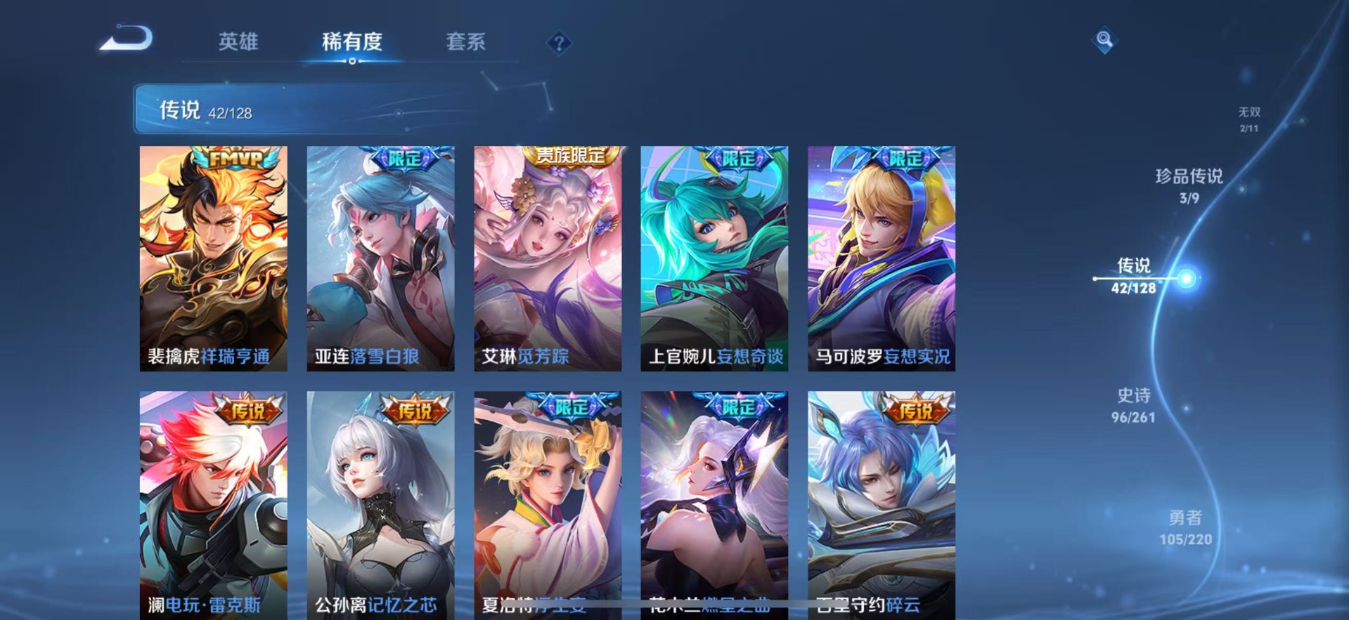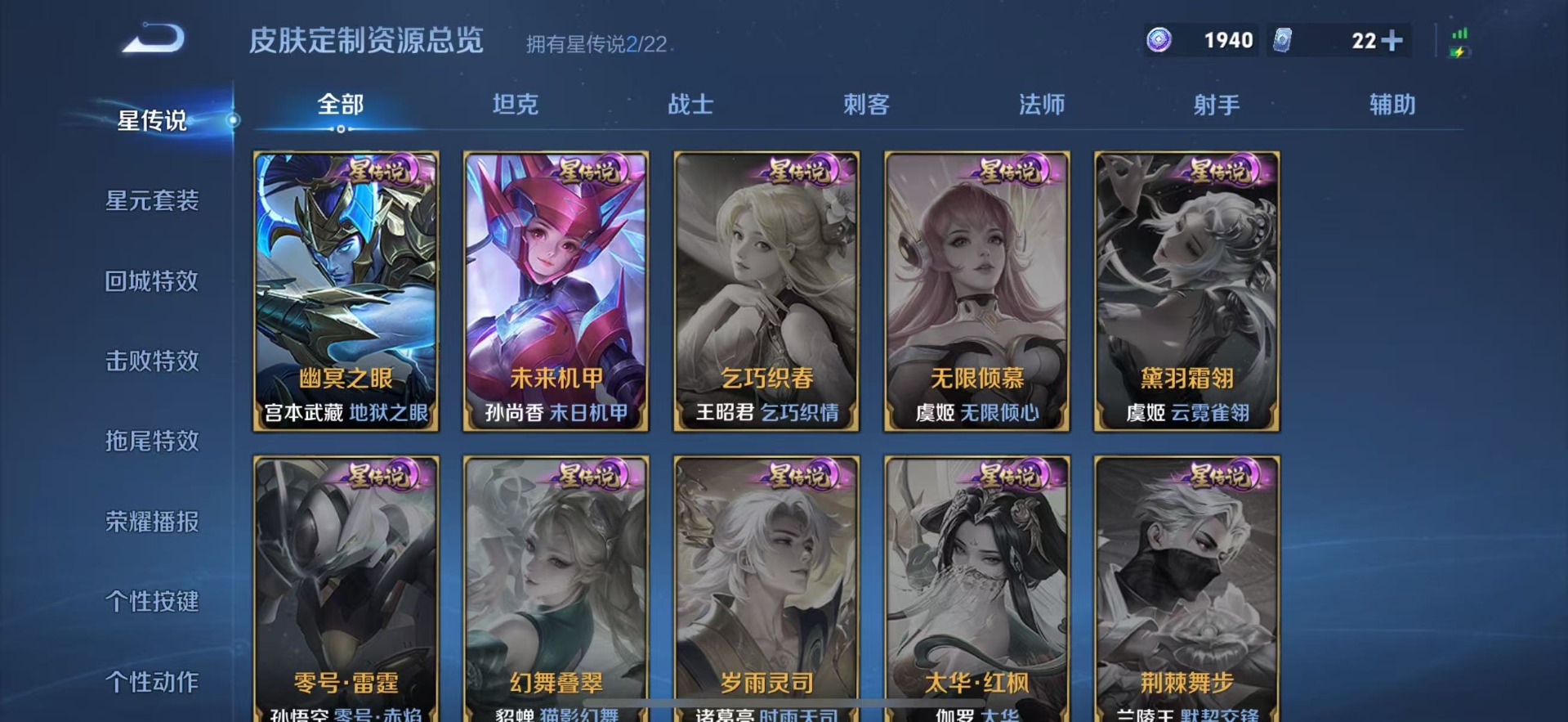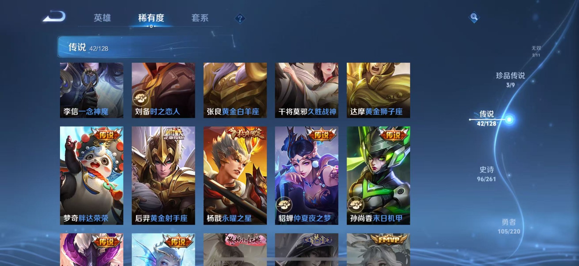 刘备时之恋人,赵云淬星耀世,干将莫邪久胜战神,小乔音你心动,李信一念神魔,达摩黄金狮子座,后羿千劫归真,镜炽阳神光,公孙离记忆之芯,亚连落雪白狼,裴擒虎祥瑞亨通,夏洛特浮生妄,艾琳觅芳踪,西施游龙清影,张良黄金白羊座,曜云鹰飞将,马超无双飞将,百里守约碎云,李元芳飞鸢探春,云缨幻光神枪