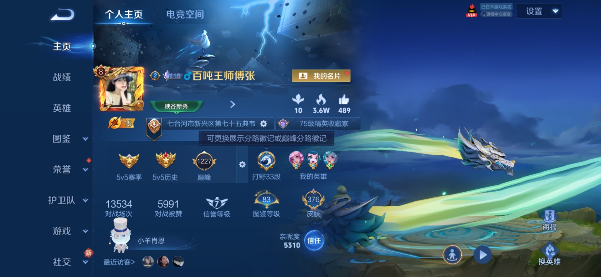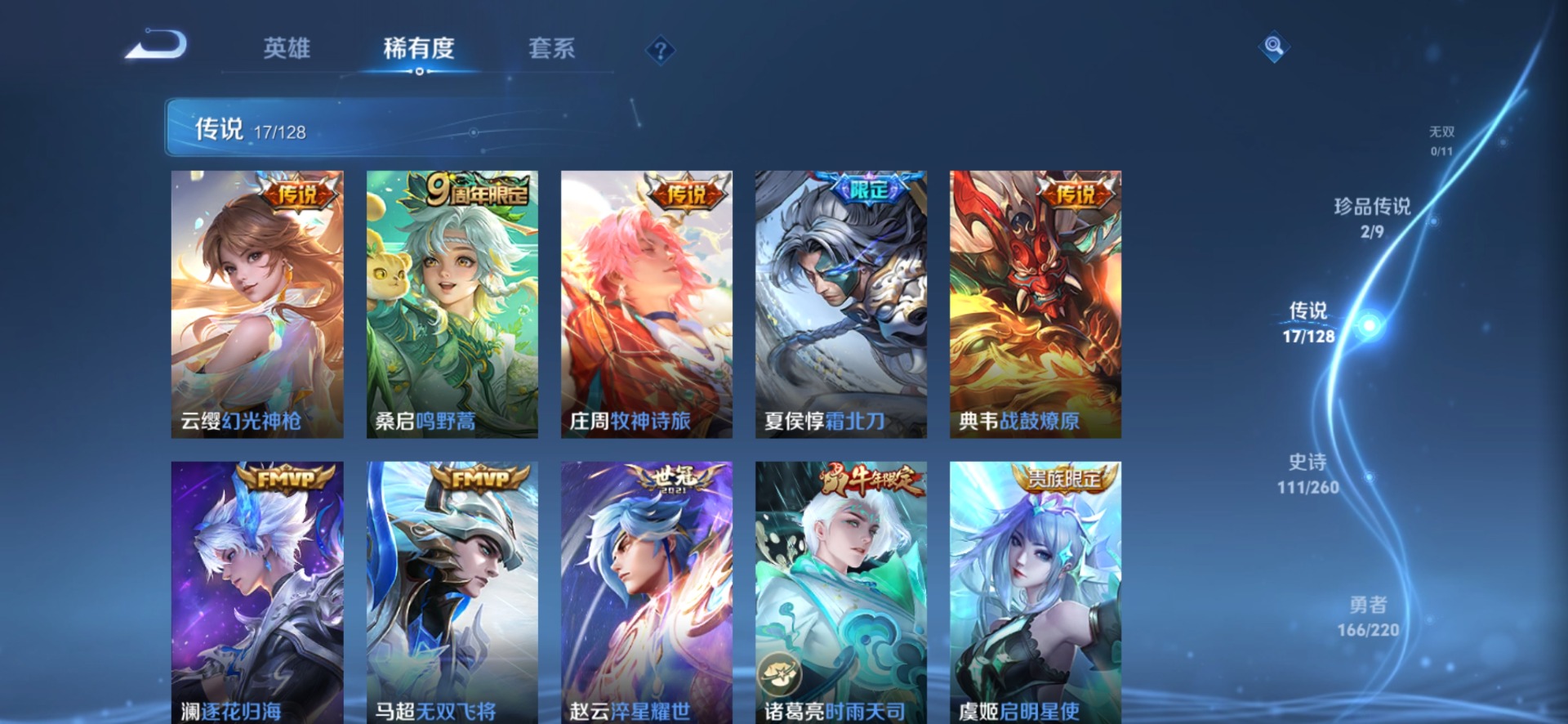 - PX_2089970-实名: 可修改 贵族等级: V6 英雄数: 112 皮肤数: 129 珍品传说: 大耳狗之梦 传说皮: 游龙清影,霜月吟,幻光神枪,续相思,云诺千山 限定皮: 遇见飞天,时之彼端,神器·万象笔,至美·化雀舞,至美·乘鲤谣,鸣野蒿,陌上桑,愿照·众生和