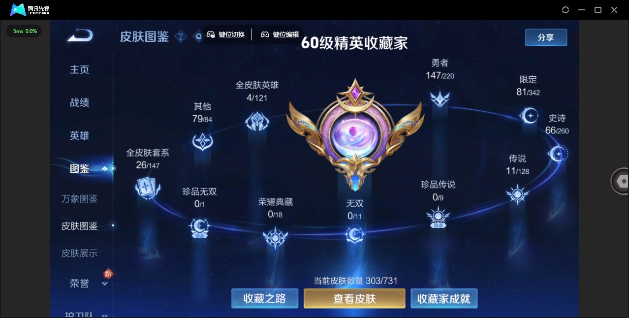- PX_2029313-贵族等级: V10 英雄数: 125 皮肤数: 383 荣耀水晶: 武则天,天鹅之梦,星空梦想,倪克斯神谕,无限飓风号,杀手不太冷,九霄神辉 无双皮: 神器·明辉仪 星传说: 幻海之心,零号·雷霆,金色仲夏夜 传说皮: 黄金狮子座,黄金射手座,冠军飞将,云鹰飞将,绛天战甲,黄金白羊座,久胜战神,炽阳神光,一念神魔,云霓雀翎,末日机甲-孙尚香,地狱火,仲夏夜之梦,零号·赤焰,海