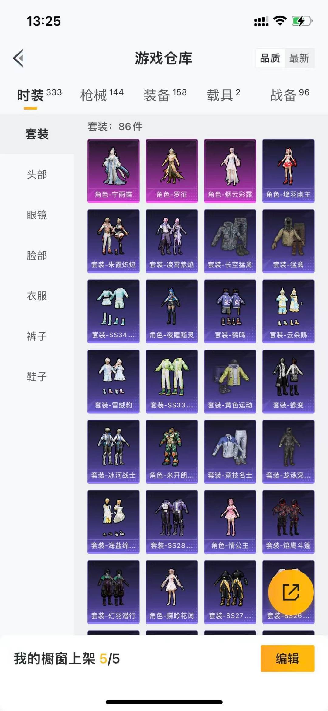 [11934366]3粉装 4特效枪 2载具 5印记 可二次 可修改实名 优质装备:宝马M4(圣保罗黄),M416心之恋语,奇异狩猎者,七级M416-心之恋语,宁雨蝶,罗征,DP-28-罗征 热门装扮:烟云彩露 稀有枪皮:DP-28-豹影疾电 四级特效枪:四级DP-28-豹影疾电 三级特效枪:三级DP-28-罗征 紫色装扮:田园牧歌,轻风白浪,SS22特训,SS23特训,幻彩翩翩,妙红点点,摩登艾咪,娇憨猪猪,萌趣咩咩,SS21特训,冰川特警,云朵鹅,雪绒豹,SS33特训套装,SS20特训,飞驰魅影,音速流光,SS19特训,甜心亚梦,虚音幻奏,瑞龙福将,团圆交子,SS17特训,焰山流火,异彩先驱,SS18特训,野性战心,长空猛禽,霓虹极客,风暴特警,虎虎生威吉莉,绛羽幽主,魅力单车,鹤鸣,黄色名流,黄色运动,龟仙人,冰河战士,龙魂突击队,蝶变,沙漠毒蛇,极地朋克,柠萌假日,深蓝色名流,滨海假日,夏日音浪,幻世战舞者,探宝勇士,滨海厨神,绮丽涂鸦,白色伏地魔,破蛋小黄鸡,福星高照,空岛之星,空投萌叽,牛气冲天,炫蓝之夏,猛禽,特殊使命,特训学院,米开朗基罗,SS28特训,玉兔迎春,林月如,竞技名士,情公主,惊鸿侠骨,SS24特训(SS24特训套装),SS25特训,元气发射,锦衣飞扬,焰鹰斗篷,幻羽潜行,SS27特训,蝶吟花词,SS26特训,精神漫游,绯格组合 优质战备:忍者神龟降落伞,江南烟雨降落伞,恐龙拽拽降落伞,喜羊羊与灰太狼降落伞,绯穹魔姬降落伞,灵猫魔法师飞行器,宁雨蝶降落伞,筑梦精灵降落伞,太空嘟嘟降落伞,未来歌姬降落伞,炎氏战神飞行翼