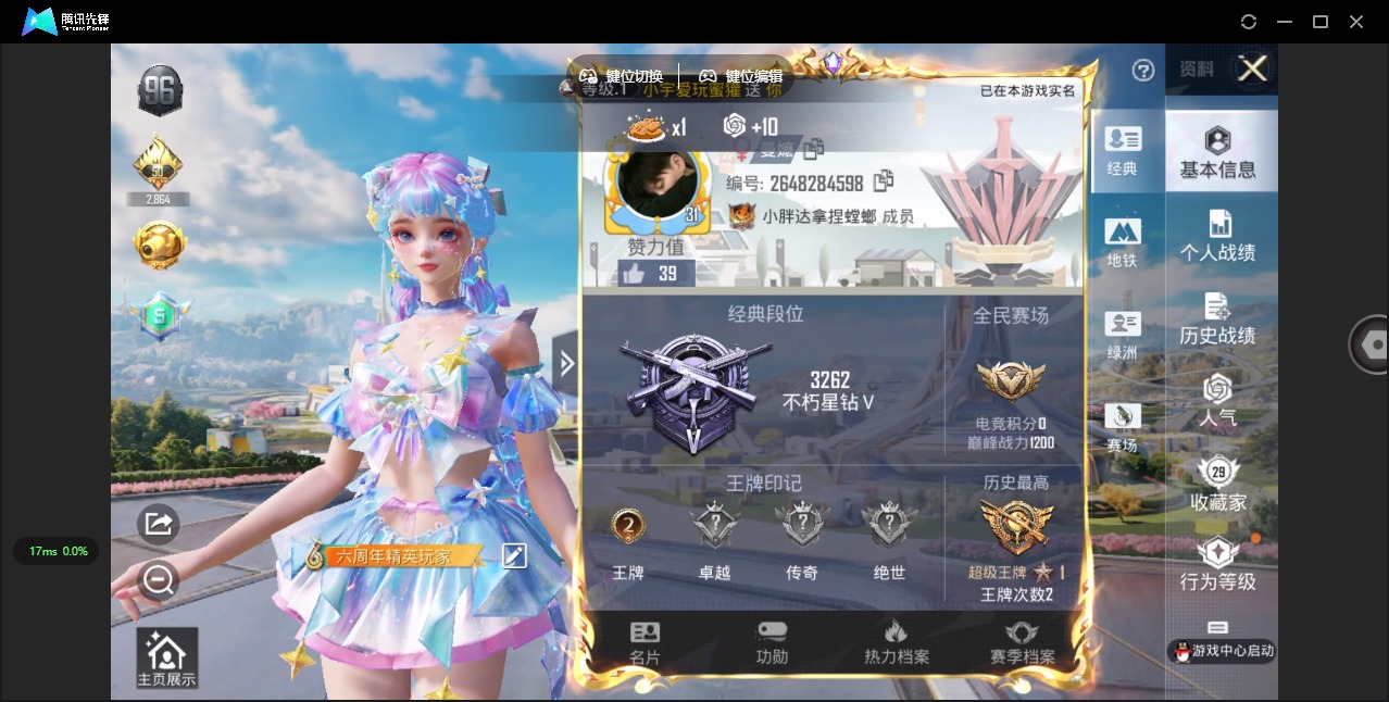 - PX_2107045-实名: 可修改 时装数: 594 枪械数: 221 战备数: 146 热门装扮: 梦幻火箭(新101),深海小丑鱼,炙焰红王,蝶舞蔷薇,葫芦兄弟,大橘为重,软萌银虎,神秘黑猫,暗夜魅影,狂花道·不知火舞 稀有枪皮: M416心之恋语,SCAR-L童趣迷兔,Groza香水柠檬,AKM梦之光华,SCAR-L青春物语,AMR-智耀战神