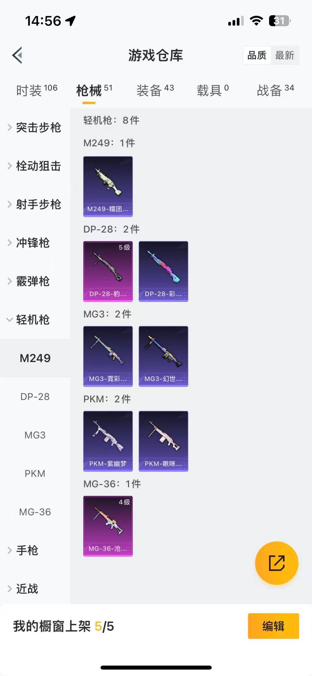 [11934699]1粉装 7特效枪 2印记 可二次 可修改实名 优质装备:GROZA-镜光银凌,AUG-暖羊咩咩,MK12-雪月幻音,MK14-甜梦熊击,荧海星豚,Kar98K-巳巳如意 热门装扮:深海小丑鱼 稀有枪皮:MG-36-沧焰双生,DP-28-豹影疾电 六级特效枪:六级MK12-雪月幻音 五级特效枪:五级GROZA-镜光银凌,五级Kar98K-巳巳如意,五级DP-28-豹影疾电,五级MK14-甜梦熊击,五级AUG-暖羊咩咩 四级特效枪:四级MG-36-沧焰双生 紫色装扮:旭日情侣,SS33特训套装,顶瓜瓜,缤纷果语,海岛探路者,异域银装,鱼渊荷华,燕燕于飞,大橘大利,星渊小夜曲,星影赞美诗,粉恋花,蓝冰羽,紫幽梦,SS32特训服(SS32特训套装),青玉碎影,恋语绒绒 优质战备:圣斗士星矢降落伞,智耀战神降落伞,雪月幻音降落伞,樱桃泡泡降落伞