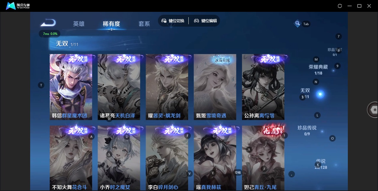 - [11518874]V7 1典藏 1珍品传说 14传说 125英雄 186皮肤 可修改实名 荣耀水晶:弑枪猎影(韩信典藏) 珍品传说:怪盗基德 传说皮:黄金天蝎座,典韦战鼓燎原,幻光神枪,山海·炽霜斩(李信年限),地狱之眼,久胜战神,云鹰飞将(小将军) 珍宝阁皮:妄想食味,优雅恋人 限定皮:愿照·九州拓(澜年限),鸣野蒿,傲雪梅枪,前尘镜,遇见飞天,齐天大圣,五谷丰年,冰锋战神,逐梦之翼,孙行者,天魔缭乱,百木心枪,无尽星芒,枫霜尽,山海·玄木吟(马可年限) 史诗皮:星界战将,茶境仙,龙之律动,上官婉儿群星魔术团,琥珀纪元伽罗,破空之剑,紫霞仙子,特工魅影,江河有灵,雪夜绮愿(周瑜),冰冠公主,无限星赏官,电玩·爆裂旋风,猫狗日记-孙策,乱世虎臣,节奏热浪,摇滚巨星,水果甜心,天才门将,星夜王子,心灵骇客,功夫厨神,德古拉伯爵,暗隐猎兽者,鬼剑武藏,心灵战警,舞动绿茵,地狱岩魂,缤纷独角兽,乘风破浪,逐浪之夏,水晶猎龙者,曙光守护者,箭羽风息,金属风暴,圣诞恋歌,鹰眼统帅,暗夜贵公子,魅力维加斯,雪上飞焰,赏金猎手,未来纪元-赵云