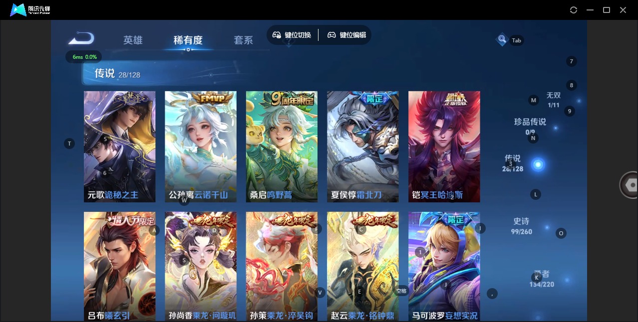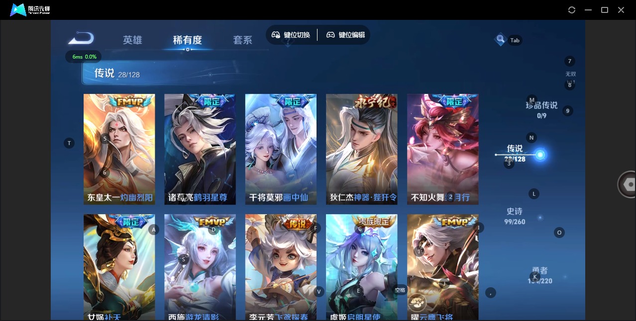 - [11472021]V6 2传说 124英雄 207皮肤 可修改实名 传说皮:久胜战神,炽阳神光 珍宝阁皮:妄想食味,优雅恋人,蔷薇恋人 限定皮:至尊宝,遇见飞天,高山流水,五谷丰年,冰锋战神,游园惊梦,李小龙 史诗皮:龙之律动,超元猎域,特工魅影,千年之狐,江河有灵,冰冠公主,魅语,电玩·爆裂旋风,猫狗日记-大乔,乱世虎臣,节奏热浪,修罗,女仆咖啡,水果甜心,天才门将,星夜王子,功夫厨神,德古拉伯爵,暗隐猎兽者,鬼剑武藏,舞动绿茵,纤云弄巧,拒霜思,缤纷独角兽,乘风破浪,逐浪之夏,水晶猎龙者,金属风暴,圣诞狂欢,圣诞恋歌,鹰眼统帅,无心,未来纪元-赵云