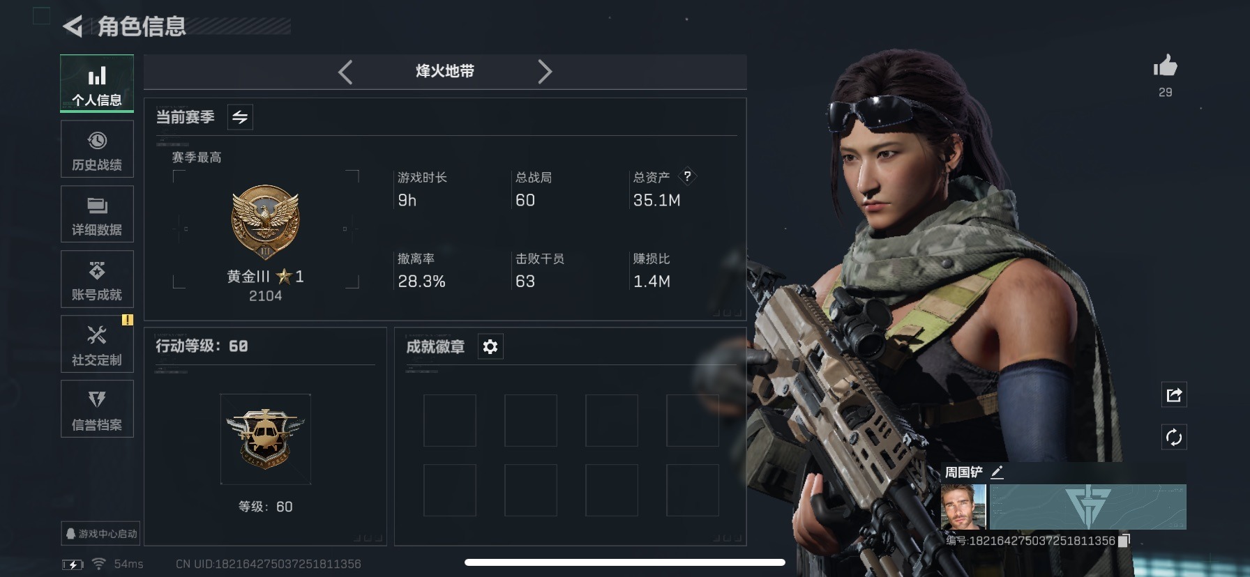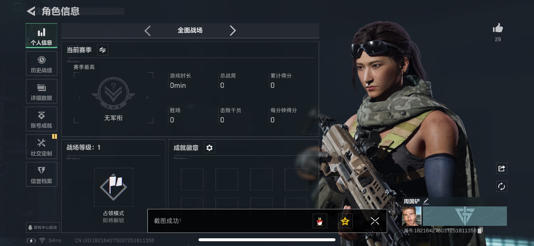 - [11252023]总资产:111.2 2传说枪械 进阶安全箱(9.17到期) 可二次 可修改实名 烽火地带段位:无段位 全面战场段位:无段位 哈夫币:17.062 传说武器皮肤:复合弓-黑-天际线,CAR-15突击步枪-阿米娅 史诗武器皮肤:SV-98狙击步枪-林中猎手,SV-98狙击步枪-囚徒