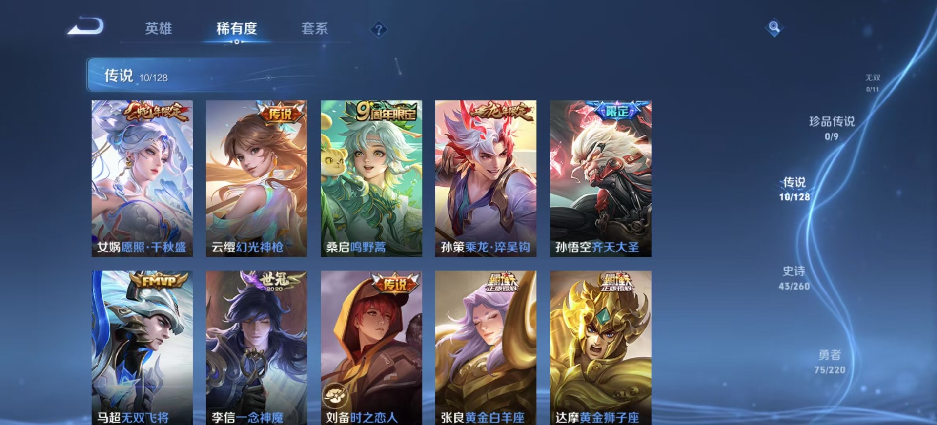 [11936972]V6 10传说 125英雄 154皮肤 可修改实名 优质装备:黄金狮子座,黄金白羊座,一念神魔,时之恋人-刘备(电焊工),无双飞将 传说皮:乘龙·淬吴钩(孙策年限),幻光神枪 珍宝阁皮:妄想食味,优雅恋人 限定皮:愿照·千秋盛(女娲年限),逐霄战戟,鸣野蒿,遇见飞天,齐天大圣,五谷丰年,青龙志(铠年限),龙胆,李小龙,山海·玄木吟(马可年限) 史诗皮:化蝶舞,龙之律动,百相守梦-黄忠,白龙吟,特工魅影,江河有灵,雪夜绮愿(周瑜),百解令(蒙犽),高渐离燃音魔法,蒙恬荣光圣徽,电玩·爆裂旋风,百相守梦(刘备),猫狗日记-孙策,时之恋人-孙尚香,摇滚巨星,水果甜心,星夜王子,德古拉伯爵,暗隐猎兽者,幽灵船长,鬼剑武藏,心灵战警,乘风破浪,水晶猎龙者,金属风暴,圣诞恋歌,鹰眼统帅,魅力维加斯,无心,未来纪元-赵云