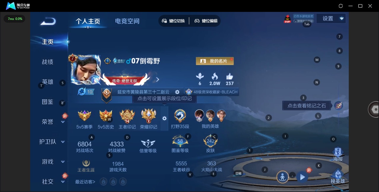 - [11608947]V7 1典藏 2珍品传说 16传说 125英雄 242皮肤 可修改实名 优质装备:鸣剑·曳影,江户川柯南,怪盗基德,一念神魔,仲夏夜之梦(大飞蛾),胖达荣荣,超时空战士-狄仁杰 传说皮:星之鸣奏,祥瑞亨通,幻光神枪 珍宝阁皮:妄想食味,蔷薇恋人 限定皮:愿照·九州拓(澜年限),愿照·福禄聚(蔡文姬年限),愿照·岁时盈(虞姬年限),愿照·山河定(司空震年限),愿照·众生和(妲己年限),愿照·千秋盛(女娲年限),逐霄战戟,鸣野蒿,异界灵契(白毛香),傲雪梅枪,绯月行,神威(电光马子),高山流水,五谷丰年,梁祝,岱宗(典韦年限),李小龙,孙行者,玉兔公主 史诗皮:狼魂孤将,化蝶舞,星界战将,茶境仙,破空之剑,芈月浮光幕影,琥珀纪元伽罗,上官婉儿群星魔术团,百相守梦-百里守约,紫霞仙子,千年之狐,江河有灵,百解令(蒙犽),高渐离燃音魔法,冰冠公主,暗夜猫娘,猫狗日记-孙策,乱世虎臣,修罗,女仆咖啡,水果甜心,天才门将,星夜王子,心灵骇客,时之奇旅-安琪拉,暗隐猎兽者,幽灵船长,鬼剑武藏,乐园奇幻夜,舞动绿茵,纤云弄巧,繁星吟游(呼啦呼啦),拒霜思,乘风破浪,逐浪之夏,水晶猎龙者,金属风暴,原初追逐者,圣诞狂欢,圣诞恋歌,鹰眼统帅,魅力维加斯,未来纪元-赵云