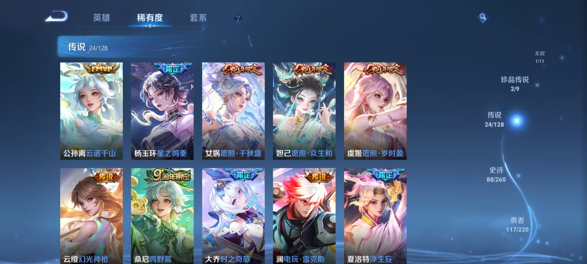 - PX_2103143-贵族7/皮肤306/传说20/史诗86/英雄124/瑶大耳狗之梦/暃朽木白哉/宫本武藏黑崎一护/蔷薇恋人/玩趣恶龙/特工战影/地狱之眼/云鹰飞将/零号赤焰/启明星使/炽阳神光/音你心动女/挚爱之约/无双飞将/枫霜尽/诗剑行/山海炽霜斩/山海苍雷引/齐天大圣/鹤羽星尊/桑启鸣野蒿/云缨幻光神枪/虞姬愿照岁时盈/澜愿照九州拓/妲己愿照众生和/西施续相思/姜子牙天穹之誓/李白谪仙醉