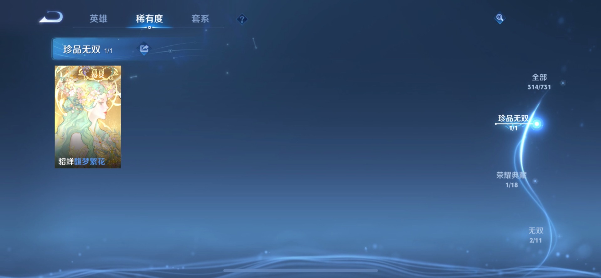 小乔音你心动,庄周牧神诗旅,镜炽阳神光,貂蝉猫影幻舞,西施游龙清影,西施续相思,嬴政玄雷天君,张良黄金白羊座,马超无双飞将