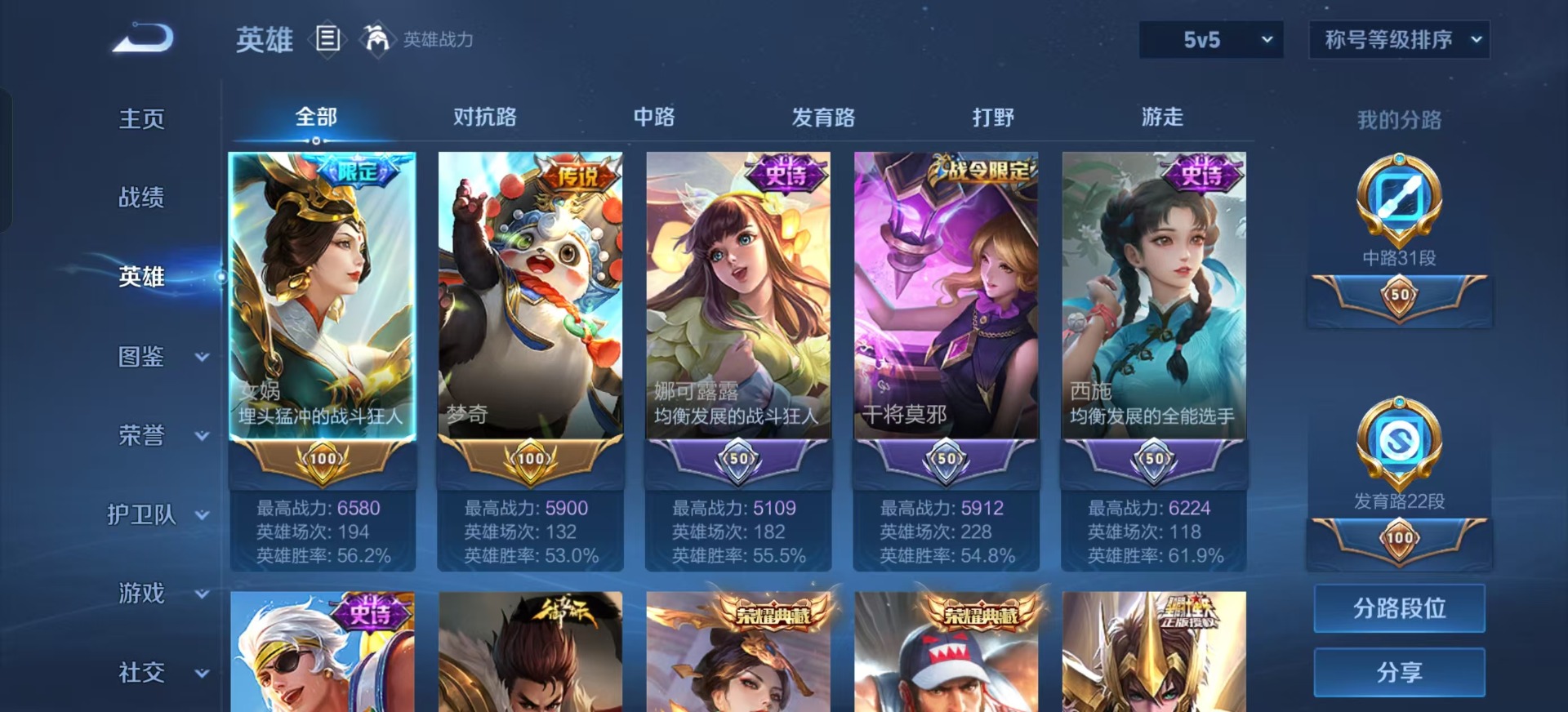 - [12082327]V6 5传说 120英雄 154皮肤 可修改实名 优质装备:黄金狮子座,一念神魔 传说皮:幻光神枪 珍宝阁皮:优雅恋人 限定皮:鸣野蒿,至尊宝,白虎志(电光耗子),飞衡(韩信年限),冰锋战神,梁祝,李小龙,逐梦之影 史诗皮:紫霞仙子,白龙吟,黄金分割率,特工魅影,无限星赏官,冰冠公主,偶像歌手,末日机甲-吕布,猫狗日记-孙策,修罗,女仆咖啡,水果甜心,星夜王子,暗隐猎兽者,幽灵船长,鬼剑武藏,纤云弄巧,乘风破浪,逐浪之夏,水晶猎龙者,曙光守护者,箭羽风息,原初追逐者,鹰眼统帅,魅力维加斯,黎明之约