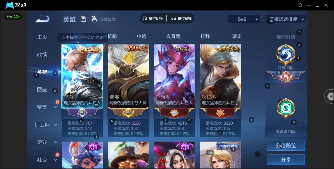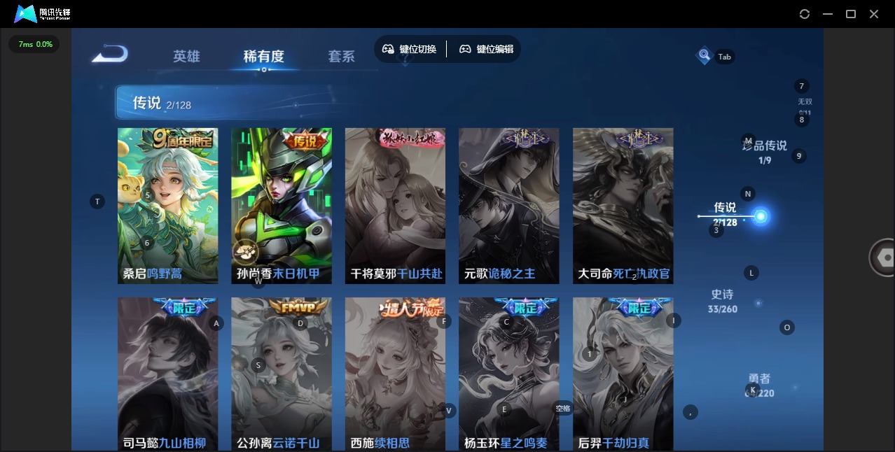 - [11386308]V5 4传说 106英雄 94皮肤 可修改实名 优质装备:绛天战甲(鸡嘴战神),云霓雀翎,地狱火 传说皮:典韦战鼓燎原 珍宝阁皮:胡桃夹子 史诗皮:鸭鸭历险记-刘禅,龙之律动,石田雨龙,戍鼓铭心,星界特工,百相守梦-黄忠,青蛇,乱世虎臣,摇滚巨星,水果甜心,鬼剑武藏,心灵战警,地狱岩魂,金属风暴,魅力维加斯