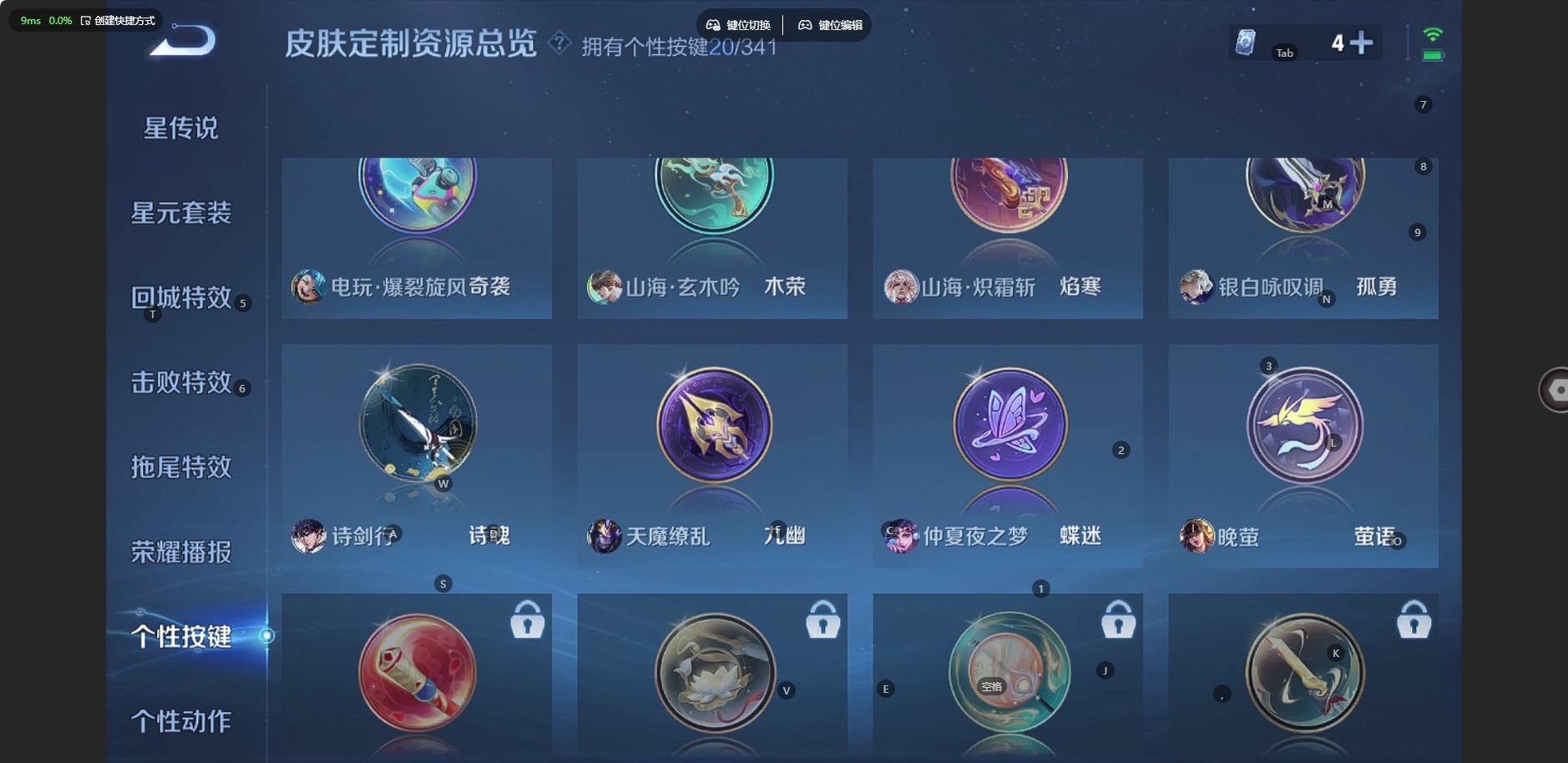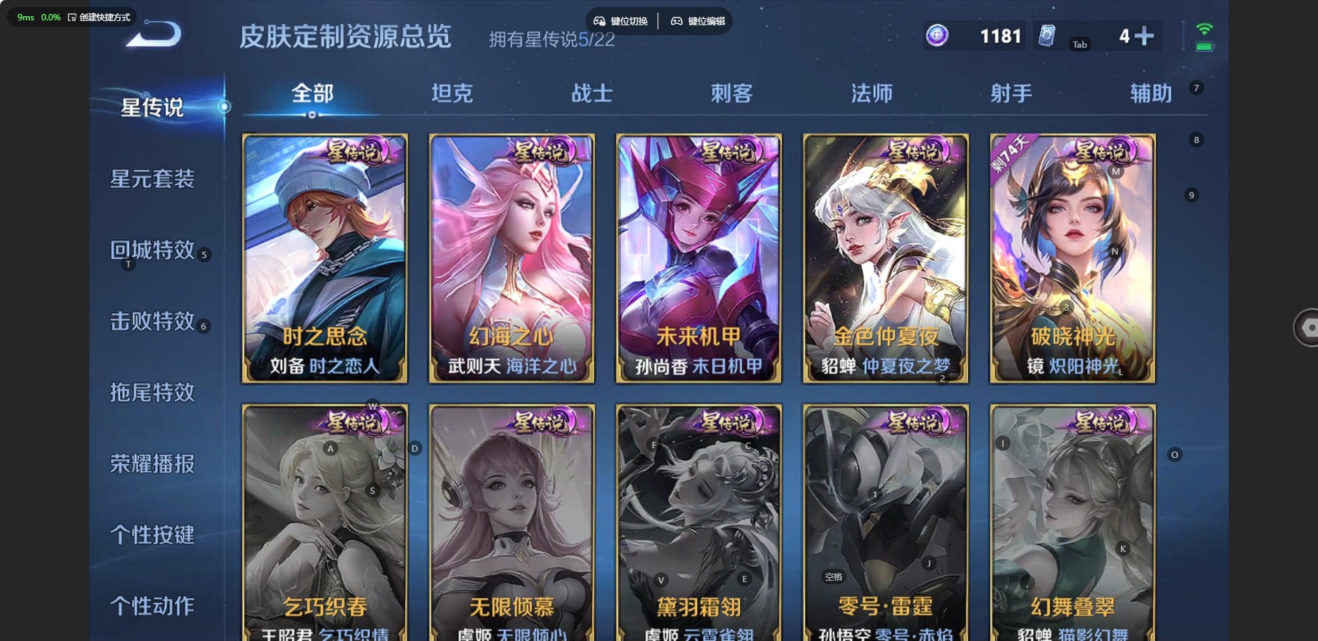 甄姬幽恒,曹操天狼征服者,伽罗太华,干将莫邪冰霜恋舞曲,典韦岱宗,后羿如梦令,后羿辉光之辰,露娜一生所爱,庄周玄嵩,貂蝉逐梦之音,裴擒虎李小龙,裴擒虎天狼狩猎者,东皇太一逐梦之光,上官婉儿梁祝,李白诗剑行,花木兰瑞麟志,安琪拉魔法小厨娘,马可波罗山海·玄木吟,孙悟空大圣娶亲,孙悟空至尊宝,百里玄策白虎志,妲己时之彼端,韩信傲雪梅枪,韩信飞衡,嫦娥如梦令,王昭君凤凰于飞