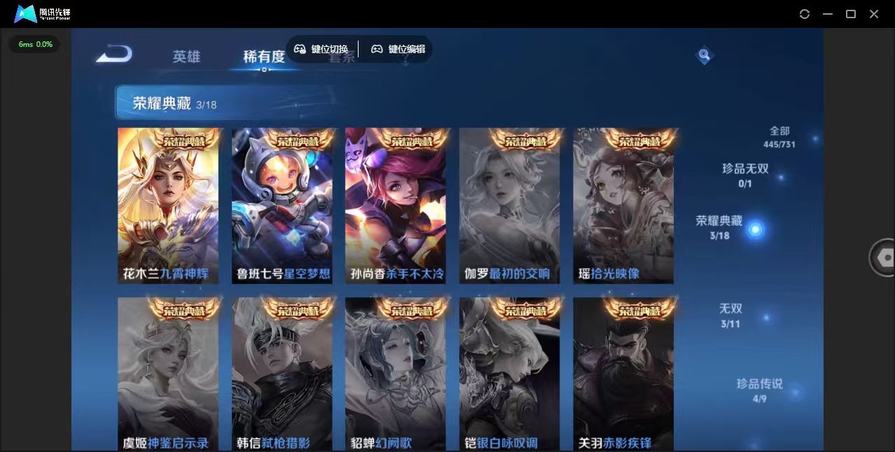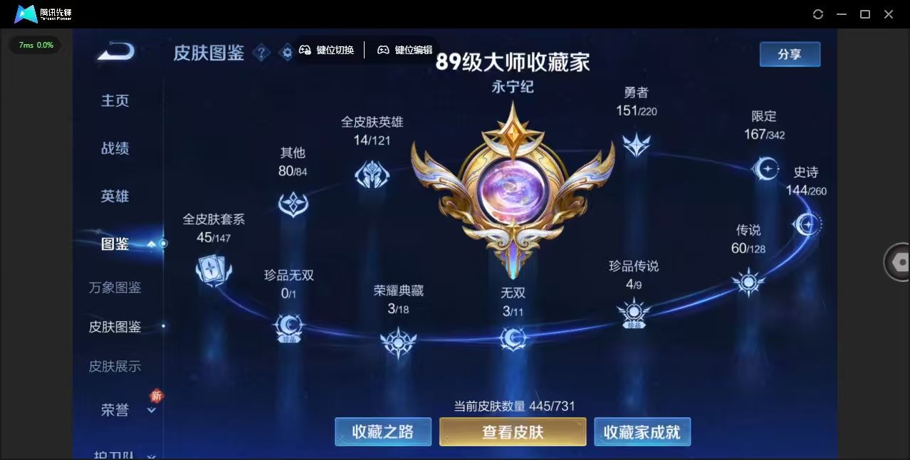 - [11784232]V7 1典藏 1珍品传说 12传说 124英雄 294皮肤 可修改实名 优质装备:弑枪猎影(韩信典藏),怪盗基德,黄金狮子座,冠军飞将,久胜战神,炽阳神光,地狱之眼,炽翼辉光(娃娃菜牛角包),澜逐花归海 珍宝阁皮:妄想食味,蔷薇恋人,玩趣恶龙 限定皮:愿照·岁时盈(虞姬年限),愿照·山河定(司空震年限),愿照·千秋盛(女娲年限),逐霄战戟,鸣野蒿,寅虎·展翼(孙膑年限),玄嵩(庄周年限),高山流水,怒海麟威,五谷丰年,天狼运算者,游园惊梦,梁祝,虎魄,李小龙,猪悟能,美猴王,匿光启智者 史诗皮:器灵·浮梦炉,灵蛊蚀心,星界战将,谪仙醉月,龙之律动,藏狐·褐绒,石田雨龙,破空之剑,战舞者,东方月初,芈月浮光幕影,琥珀纪元伽罗,蔬乡物语(鲁班七号),遇见神鹿,白龙吟,特工魅影,千年之狐,江河有灵,百解令(蒙犽),高渐离燃音魔法,蒙恬荣光圣徽,偶像歌手,电玩·爆裂旋风,龙骑士(小龙虾),末日机甲-吕布,猫狗日记-孙策,猫狗日记-大乔,时之恋人-孙尚香,乱世虎臣,节奏热浪,修罗,女仆咖啡,摇滚巨星,水果甜心,天才门将,星夜王子,心灵骇客,功夫厨神,德古拉伯爵,暗隐猎兽者,幽灵船长,鬼剑武藏,暗渊魔法,心灵战警,地狱岩魂,纤云弄巧,繁星吟游(呼啦呼啦),乘风破浪,逐浪之夏,月团寄思,水晶猎龙者,曙光守护者,金属风暴,原初追逐者,圣诞狂欢,圣诞恋歌,鹰眼统帅,黎明之约,未来纪元-赵云1