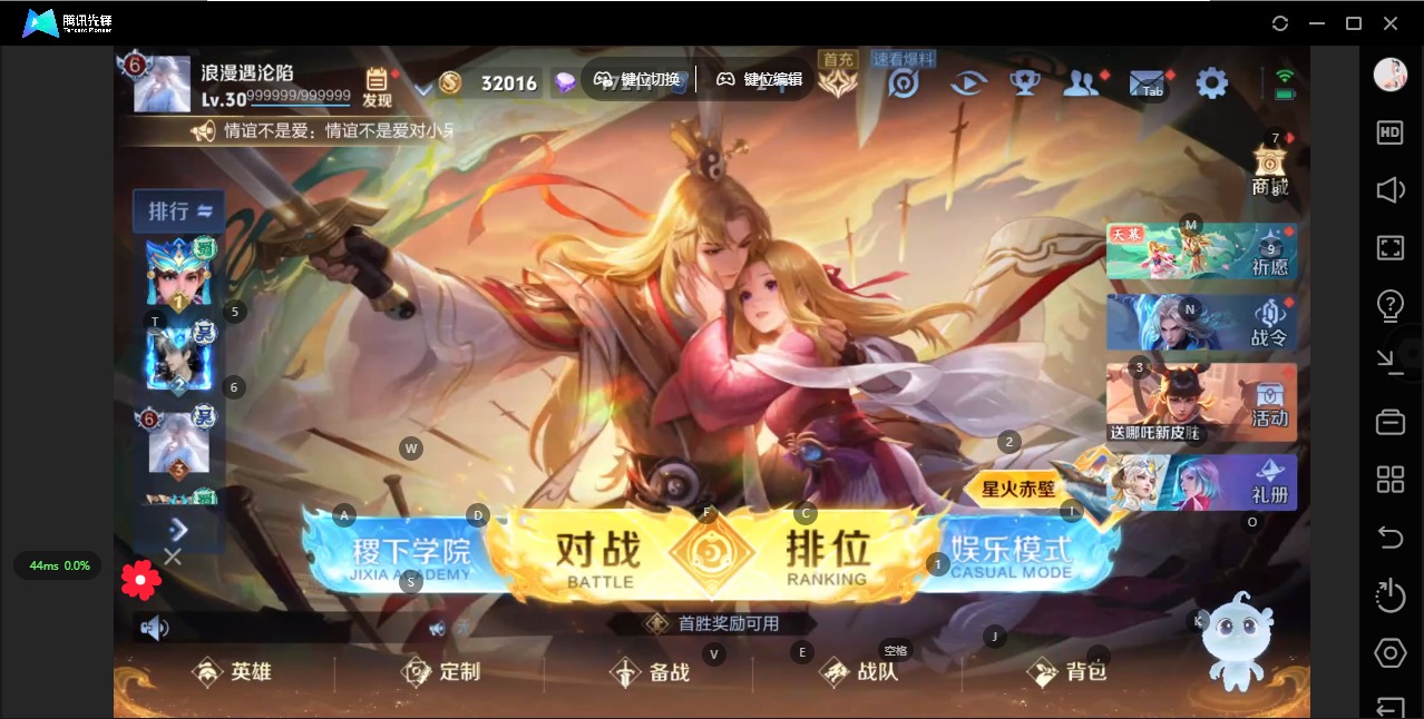 - PX_2090106-实名: 可修改 贵族等级: V5 英雄数: 95 皮肤数: 76 传说皮: 澜逐花归海 限定皮: 愿照·众生和,愿照·岁时盈,愿照·福禄聚