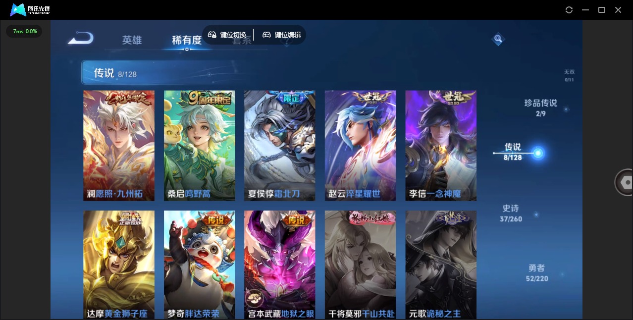 [11939245]V7 1典藏 2珍品传说 8传说 116英雄 119皮肤 可修改实名 优质装备:九霄神辉(木兰典藏),怪盗基德,黄金狮子座,一念神魔,地狱之眼,胖达荣荣,淬星耀世 珍品传说:时之奇旅-孙策 限定皮:愿照·九州拓(澜年限),逐霄战戟,鸣野蒿,夏侯惇霜北刀 史诗皮:器灵·浮梦炉,化蝶舞,星界战将,百相守梦-周瑜,撼地雄心,破空之剑,东方月初,蒙犽顽岩魄,埋骨钱,蔬乡物语(鲁班七号),苍穹之光,黄金分割率,千年之狐,冰冠公主,猫狗日记-孙策,乱世虎臣,水果甜心,绅士熊喵,天才门将,星夜王子,暗隐猎兽者,幽灵船长,鬼剑武藏,暗渊魔法,乘风破浪,水晶猎龙者,曙光守护者,圣诞狂欢,圣诞恋歌,鹰眼统帅,魅力维加斯,雪上飞焰