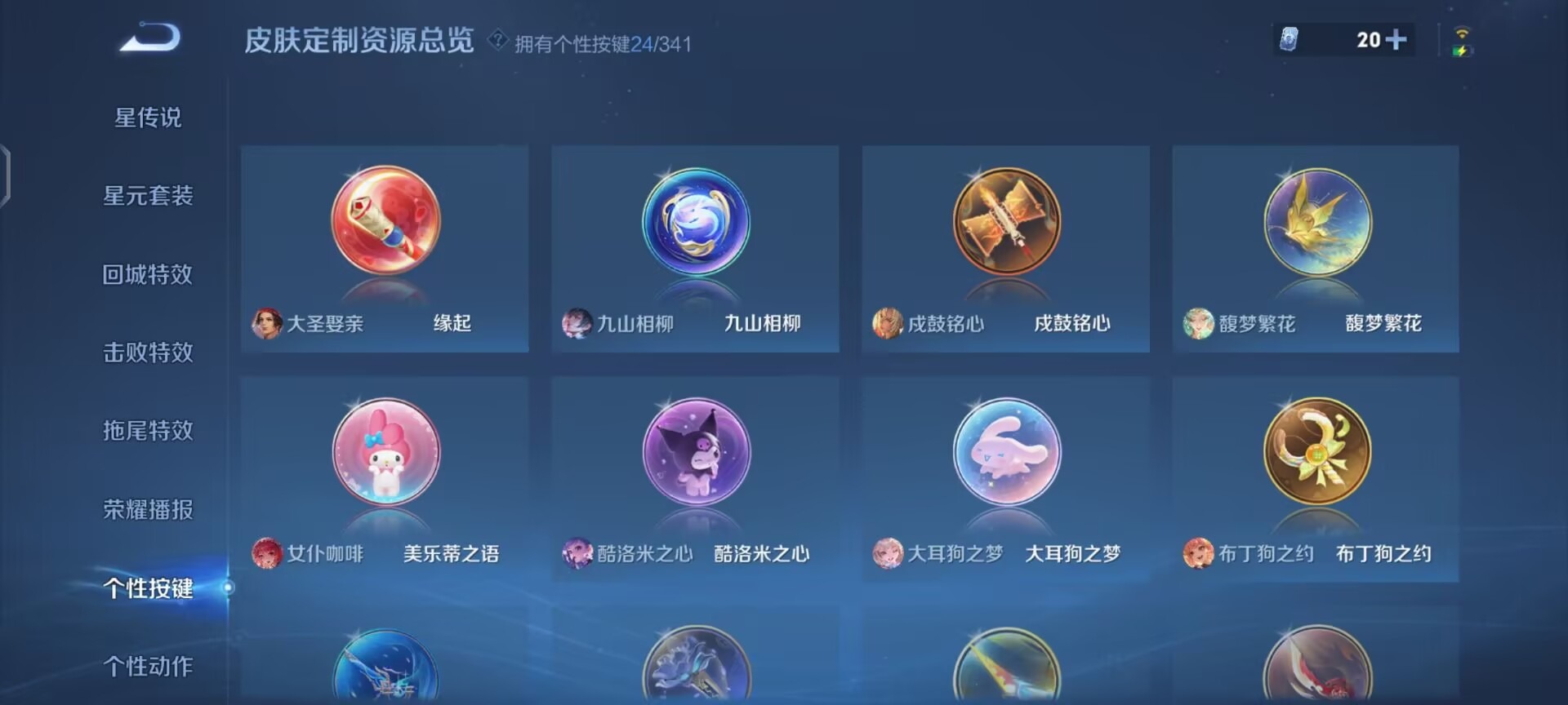 夏侯惇霜北刀,廉颇寅虎·御盾,孙膑寅虎·展翼,典韦岱宗,诸葛亮时雨天司,司空震愿照·山河定,裴擒虎李小龙,上官婉儿梁祝,李白诗剑行,安琪拉魔法小厨娘,桑启鸣野蒿,女娲愿照·千秋盛,孙悟空孙行者,孙悟空大圣娶亲,孙悟空至尊宝,妲己时之奇旅,妲己愿照·众生和,韩信傲雪梅枪,韩信逐梦之影,百里守约朱雀志,蔡文姬愿照·福禄聚,澜愿照·九州拓,虞姬愿照·岁时盈,关羽冰锋战神