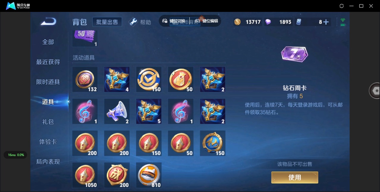 - [12063623]3橙皮 1紫皮 28皮肤 21英雄 45卡面 90已用源晶 青铜 优质装备:命运权杖,诡秘蛇影 步枪皮肤:狂徒-堕天遗武