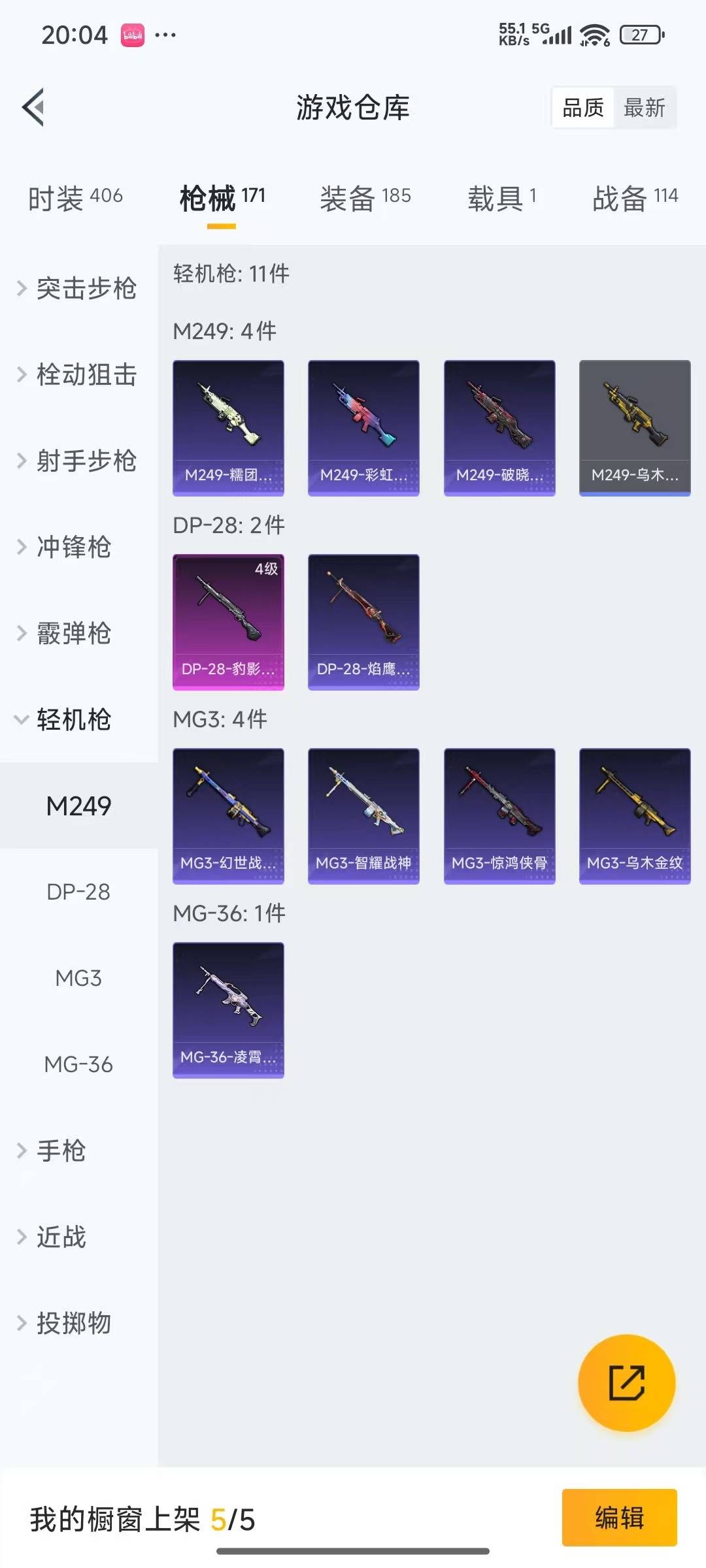[11940702]3粉装 10特效枪 1载具 9印记 可二次 可修改实名 女号优质装备:兰博基尼Estoque(银翼灰),M416心之恋语,梦幻火箭(新101)(新火箭少女101粉色套装),SCAR-L纯梦嫁纱,SCAR-L-锦绣绵绵,M762-电糖天使,M416电玩时刻,UMP45量子极限,M762-青锋波束,GROZA-镜光银凌,Kar98K-巳巳如意 热门装扮:光极星,金丰海韵 载具:空客H135-蔚蓝之翼 稀有枪皮:DP-28-豹影疾电 五级特效枪:五级M762-青锋波束,五级UMP45-量子极限,五级Kar98K-巳巳如意,五级M416-电玩时刻,五级SCAR-L-锦绣绵绵 四级特效枪:四级GROZA-镜光银凌,四级M416-心之恋语,四级DP-28-豹影疾电,四级M762-电糖天使,四级SCAR-L-纯梦嫁纱 紫色装扮:SS23特训,香榭午后,SS21特训,SS31特训套装,SS5特训,冷焰舞者,北国孤狼,千禧之恋,SS30特训套装,SS33特训套装,SS15特训,时空追击者,暴风机械师,SS16特训,SS13特训,浪漫樱花,萌趣颜团子,特种颜团子,SS19特训,吉莉礼服,SS17特训,极乐追光,SS18特训,都市魅力,野性战心,金鼠迎春,长空猛禽,雨林探路者,雪山精英,霓虹街区,青春校园,缤纷果语,蓝彩潮人,蓝色守护者,街头潮人,跃动心情,飞行日记,骑行爱好者,魅力单车,黎明保卫者,龙的传人,龟仙人,冰河战士,龙魂突击队,蝶变,香桃花海,极速红龙,格斗先锋,海岛探路者,幻影武者,圣诞大吉,夏日音浪,战地督导,绮丽涂鸦,疯狂小兔子,破蛋小黄鸡,甜蜜告白,空岛之星,空投萌叽,竞技勇士朋克,竞技达人朋克,灰色格斗者,猛禽,猎鹰,小熊娃娃,雏菊兔兔,萝兰蝴蝶,SS29特训,达芬奇,极冰使者,狂花道·雅典娜,星途旅人,纯真浪花,热情海星,SS28特训,卖崽青蛙,冰公主,青团波波,糖糖葫芦,竞技名士,惊鸿侠骨,SS25特训,锦衣飞扬,湖雨初晴,焰鹰斗篷,幻羽潜行,SS27特训,小丑鱼,华灯初上,SS26特训,SS6特训,SS7特训,奇趣章鱼,SS8特训,星渊小夜曲,SS11特训,SS32特训服(SS32特训套装),绯格组合,街舞之王,幽幻花璃,奇趣企鹅 优质战备:守护天翼降落伞,精灵梦叶罗丽降落伞,星途旅人降落伞,公主华盖飞行器,星之彼岸降落伞,喜羊羊与灰太狼降落伞,快乐主宰降落伞