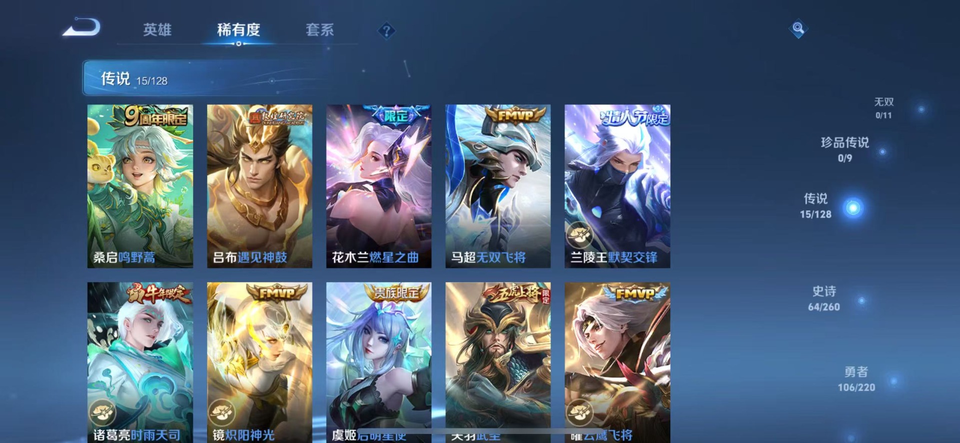- [11714400]V6 1无双 1珍品传说 5传说 121英雄 136皮肤 可修改实名 貂蝉小国标 优质装备:离恨烟(公孙离无双),器灵·落星盏,炽阳神光,仲夏夜之梦(大飞蛾) 传说皮:幻光神枪 限定皮:愿照·九州拓(澜年限),陌上桑,鸣野蒿,至尊宝,玉兔公主 史诗皮:器灵·浮梦炉,化蝶舞,星界战将,龙之律动,怒海争锋,炽弈燎原,破空之剑,蒙犽顽岩魄,芈月浮光幕影,蔬乡物语(鲁班七号),百相守梦-百里守约,百相守梦-黄忠,遇见神鹿,紫霞仙子,黄金分割率,特工魅影,猫狗日记-孙策,节奏热浪,水果甜心,星夜王子,功夫厨神,暗隐猎兽者,鬼剑武藏,舞动绿茵,缤纷独角兽,乘风破浪,水晶猎龙者,曙光守护者,原初追逐者,圣诞狂欢,圣诞恋歌,鹰眼统帅,魅力维加斯