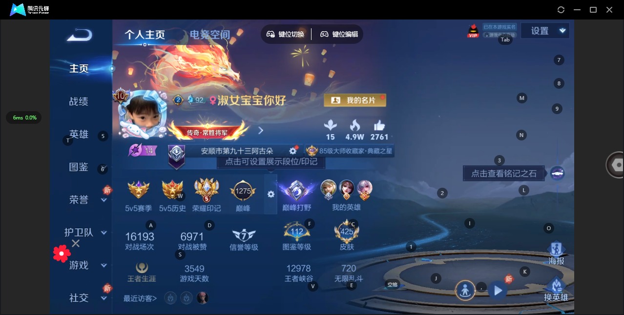 - PX_2109698-贵族等级: V6 英雄数: 97 皮肤数: 78 限定皮: 李小龙,游园惊梦,凤求凰,至尊宝