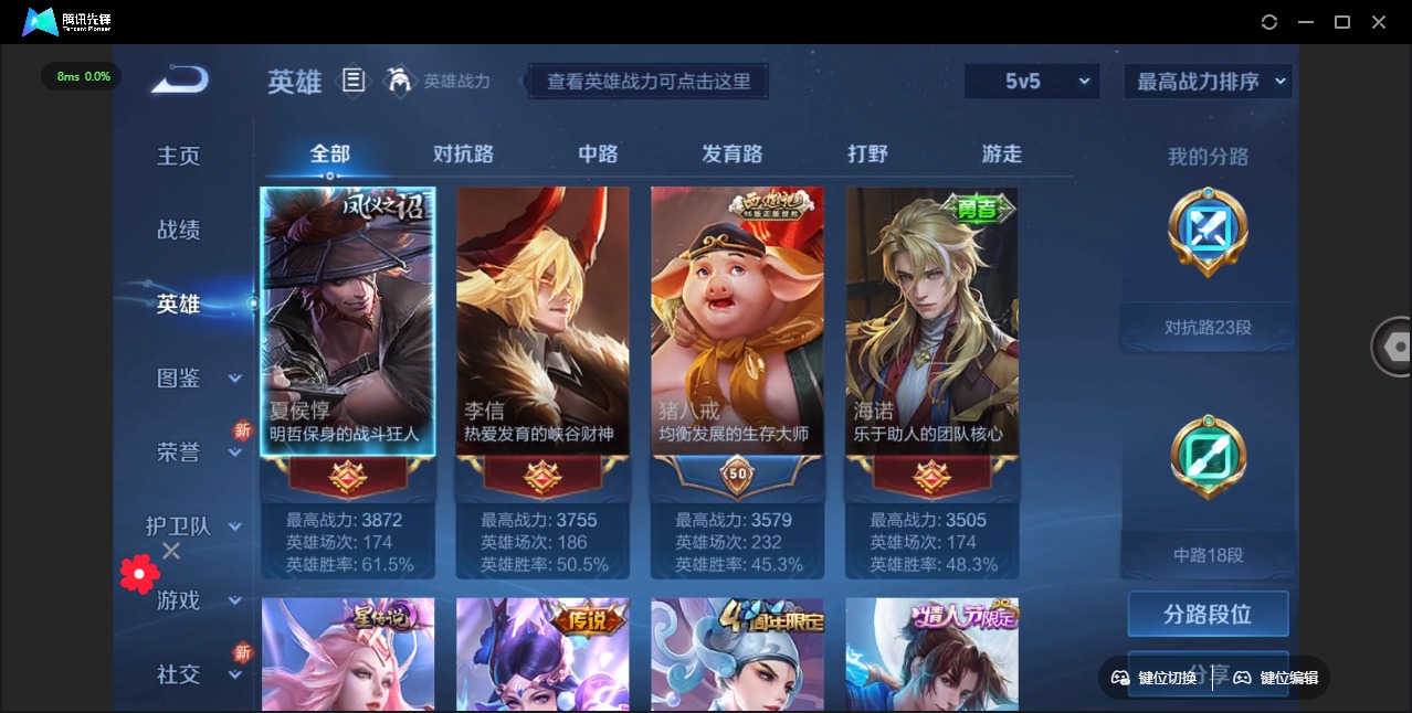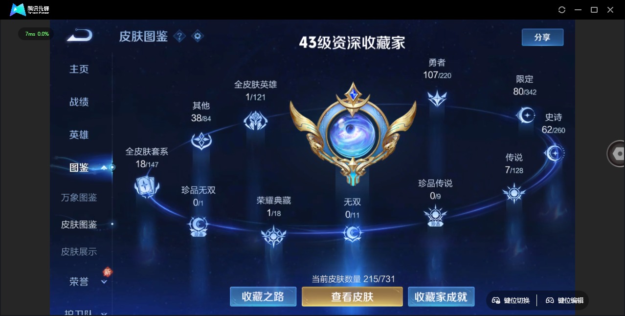 - PX_2093932-实名: 可修改 贵族等级: V5 英雄数: 98 皮肤数: 84 传说皮: 一念神魔,澜逐花归海 限定皮: 梁祝,鸣野蒿,愿照·九州拓