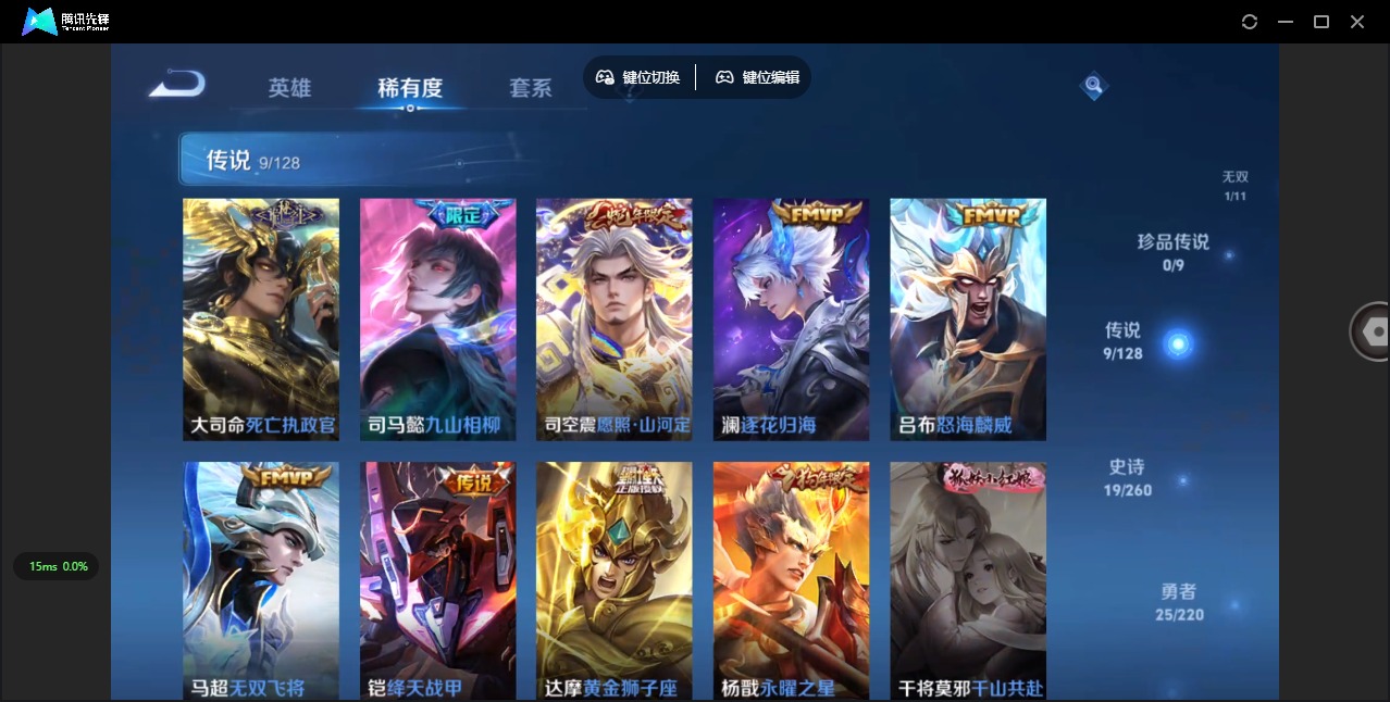 - [12193428]V7 1典藏 1无双 10传说 124英雄 150皮肤 可修改实名 优质装备:弑枪猎影(韩信典藏),器灵·螭龙剑,黄金射手座,地狱火,时之恋人-刘备(电焊工),无双飞将,霜月吟 传说皮:云诺千山,幻光神枪 珍宝阁皮:女武神 限定皮:愿照·九州拓(澜年限),鸣野蒿,至尊宝,诗剑行,梁祝,李小龙,蜜橘之夏 史诗皮:器灵·浮梦炉,化蝶舞,百相守梦-周瑜,茶境仙,百相守梦-黄忠,谪仙醉月,蒙犽顽岩魄,苍穹之光,特工魅影,千年之狐,偶像歌手,暗夜猫娘,修罗,女仆咖啡,星夜王子,幽灵船长,鬼剑武藏,舞动绿茵,纤云弄巧,繁星吟游(呼啦呼啦),缤纷独角兽,乘风破浪,原初追逐者,圣诞狂欢,圣诞恋歌,鹰眼统帅,暗夜贵公子,未来纪元-赵云