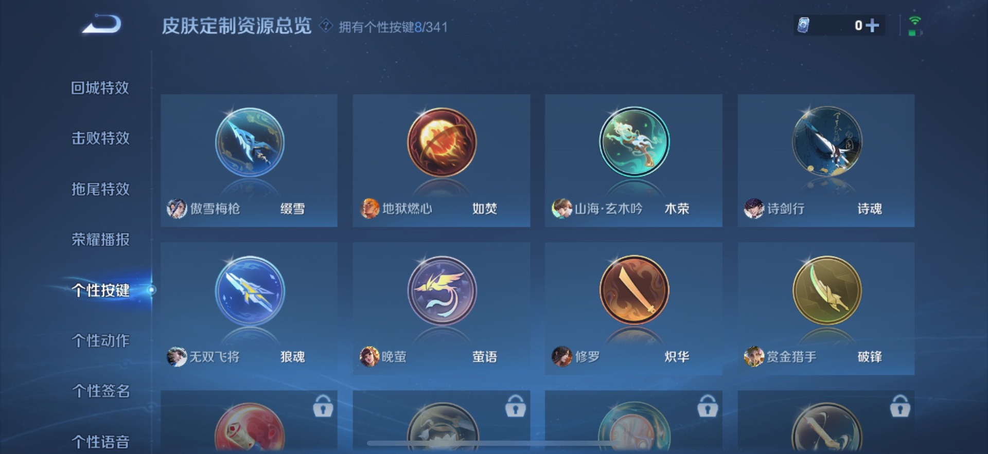 宫本武藏鬼剑武藏,高渐离燃音魔法,兰陵王暗隐猎兽者,刘邦德古拉伯爵,花木兰水晶猎龙者,曹操幽灵船长,百里玄策原初追逐者,雅典娜冰冠公主,墨子金属风暴,吕布圣诞狂欢,露娜紫霞仙子,澜赏金猎手,娜可露露晚萤,王昭君偶像歌手,刘禅天才门将,橘右京修罗