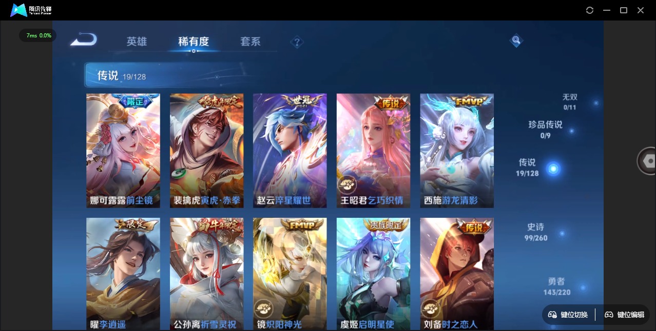 - [11764645]V8 20传说 123英雄 265皮肤 可修改实名 优质装备:冠军飞将,云鹰飞将(小将军),绛天战甲(鸡嘴战神),久胜战神,炽阳神光,一念神魔,地狱火,仲夏夜之梦(大飞蛾),地狱之眼,胖达荣荣,浮生妄 传说皮:乘龙·问璇玑(孙尚香年限),乘龙·淬吴钩(孙策年限),典韦战鼓燎原 珍宝阁皮:蔷薇恋人,玩趣恶龙 限定皮:愿照·九州拓(澜年限),愿照·山河定(司空震年限),逐霄战戟,鸣野蒿,至尊宝,傲雪梅枪,高山流水,齐天大圣,怒海麟威,五谷丰年,游园惊梦,岱宗(典韦年限),山海·玄木吟(马可年限) 史诗皮:绮世丹青,化蝶舞,星界战将,茶境仙,怒海争锋,破空之剑,蔬乡物语(鲁班七号),百相守梦-百里守约,紫霞仙子,电玩小子(小书包),黄金分割率,特工魅影,千年之狐,江河有灵,真我赫兹(百里守约),高渐离燃音魔法,蒙恬荣光圣徽,匿光破解者,偶像歌手,白蛇,电玩·爆裂旋风,暗夜猫娘,龙骑士(小龙虾),末日机甲-吕布,猫狗日记-孙策,乱世虎臣,节奏热浪,修罗,女仆咖啡,摇滚巨星,水果甜心,绅士熊喵,天才门将,星夜王子,心灵骇客,功夫厨神,德古拉伯爵,暗隐猎兽者,幽灵船长,鬼剑武藏,暗渊魔法,心灵战警,乐园奇幻夜,天秀·启明,舞动绿茵,地狱岩魂,拒霜思,缤纷独角兽,乘风破浪,逐浪之夏,水晶猎龙者,曙光守护者,箭羽风息,金属风暴,原初追逐者,圣诞狂欢,圣诞恋歌,鹰眼统帅,暗夜贵公子,黎明之约,赏金猎手,无心,未来纪元-赵云