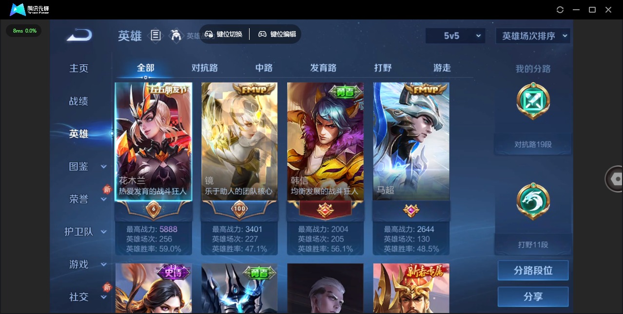 - [11625995]V8 1典藏 1珍品传说 19传说 124英雄 270皮肤 可修改实名 优质装备:弑枪猎影(韩信典藏),云鹰飞将(小将军),久胜战神,一念神魔,仲夏夜之梦(大飞蛾),零号·赤焰,时之恋人-刘备(电焊工),挚爱之约,无双飞将,音你闪耀(rap皮),黄金天蝎座 珍品传说:时之奇旅-孙策 传说皮:乘龙·淬吴钩(孙策年限),典韦战鼓燎原,幻光神枪 珍宝阁皮:妄想食味,优雅恋人,玩趣恶龙 限定皮:鸣野蒿,武陵仙君(小桃花),傲雪梅枪,寅虎·展翼(孙膑年限),高山流水,五谷丰年,梁祝,李小龙,玄武志(苏烈年限),如梦令-后羿,猪悟能,冰霜恋舞曲,匿光追影者,寅虎·御盾(廉颇年限),寅虎·瑞焰(虎皮蛋子),寅虎·心曲(虎婆),寅虎·赤拳(老虎年限),时之祈愿-云中君,枫霜尽,山海·玄木吟(马可年限) 史诗皮:化蝶舞,星界战将,海诺心动手记,破空之剑,涂山红红,东方月初,埋骨钱,奇遇星旅,蔬乡物语(鲁班七号),遇见神鹿,紫霞仙子,苍穹之光,电玩小子(小书包),黄金分割率,特工魅影,永昼,百相守梦(关羽),江河有灵,百解令(蒙犽),高渐离燃音魔法,蒙恬荣光圣徽,偶像歌手,无限星赏官,冰冠公主,青蛇,末日机甲-吕布,猫狗日记-孙策,猫狗日记-大乔,时之恋人-孙尚香,乱世虎臣,节奏热浪,修罗,摇滚巨星,水果甜心,绅士熊喵,星夜王子,功夫厨神,德古拉伯爵,暗隐猎兽者,幽灵船长,鬼剑武藏,心灵战警,舞动绿茵,地狱岩魂,繁星吟游(呼啦呼啦),拒霜思,缤纷独角兽,乘风破浪,逐浪之夏,龙鼓争鸣,水晶猎龙者,曙光守护者,金属风暴,原初追逐者,圣诞恋歌,鹰眼统帅,魅力维加斯,赏金猎手,奇遇舞章,寅虎·御盾,无心