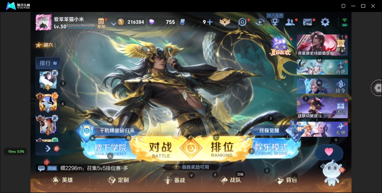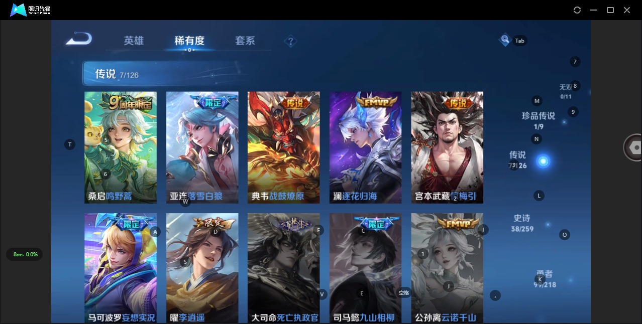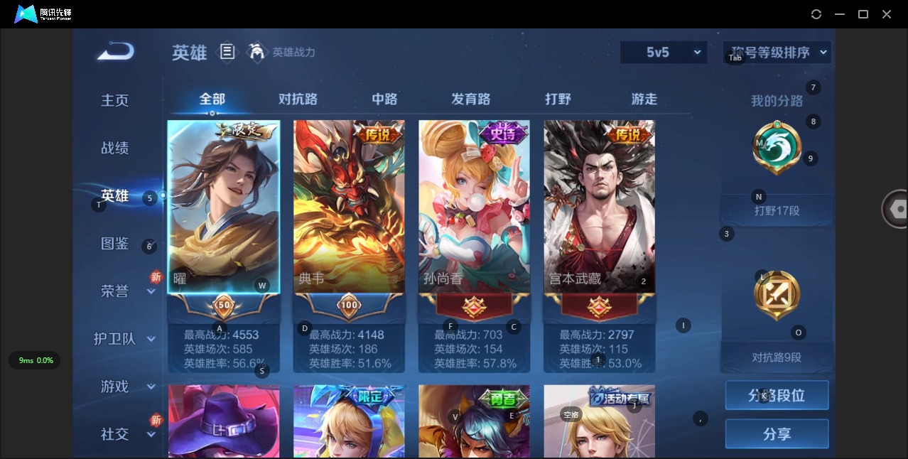 - PX_2095037-实名: 可修改 贵族等级: V5 英雄数: 63 皮肤数: 43 传说皮: 典韦战鼓燎原