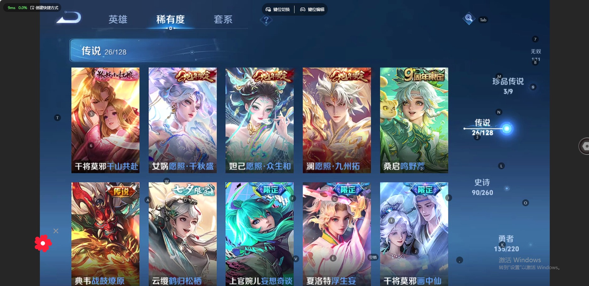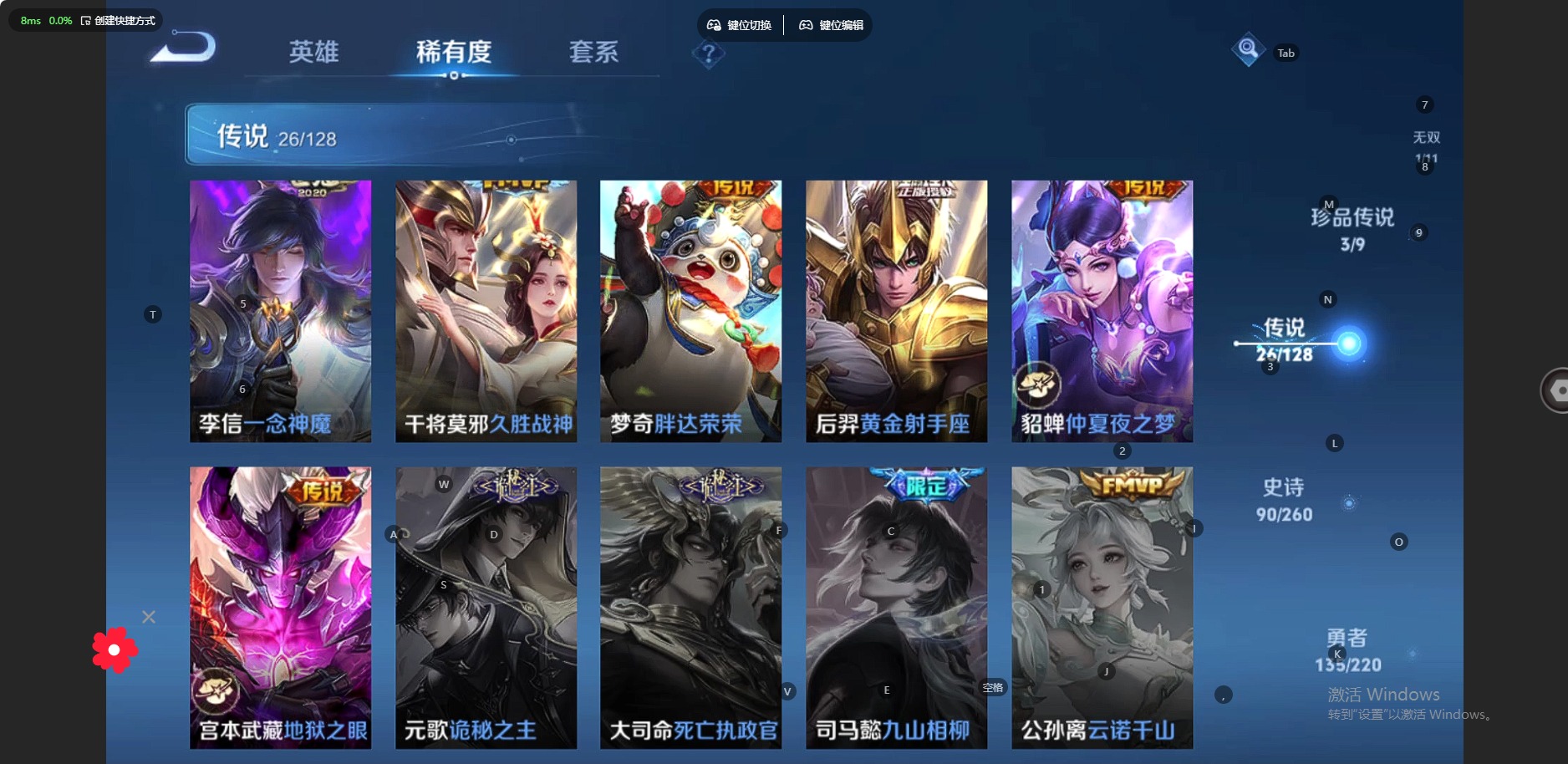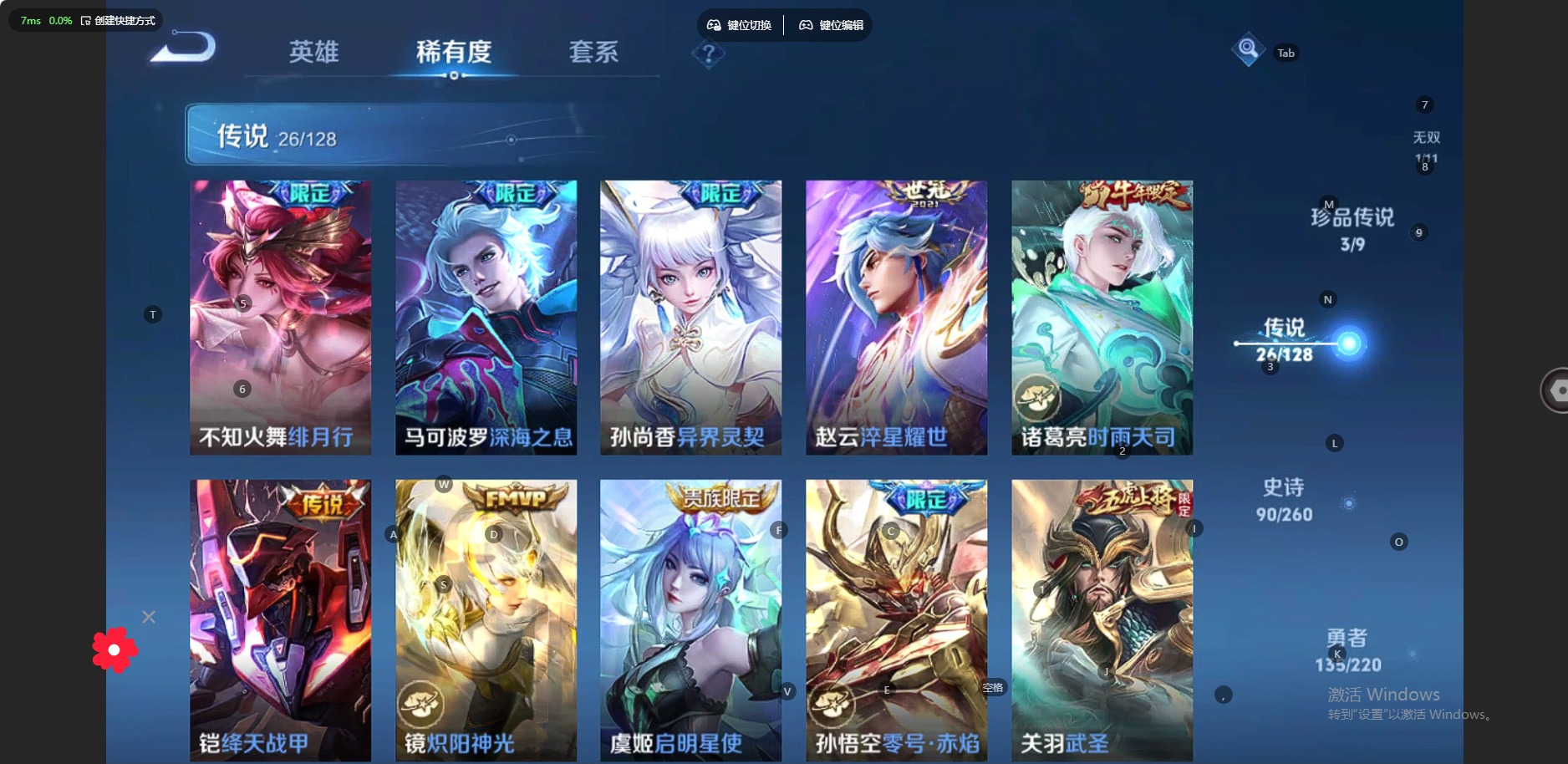 - [12203757]V6 2传说 117英雄 134皮肤 可修改实名 优质装备:黄金狮子座 限定皮:至尊宝,凤求凰(白切鸡),龙胆,李小龙,大圣娶亲 史诗皮:黄金分割率,冰冠公主,摇滚巨星,水果甜心,德古拉伯爵,鬼剑武藏,纤云弄巧,繁星吟游(呼啦呼啦),缤纷独角兽,乘风破浪,逐浪之夏,圣诞恋歌,鹰眼统帅,魅力维加斯
