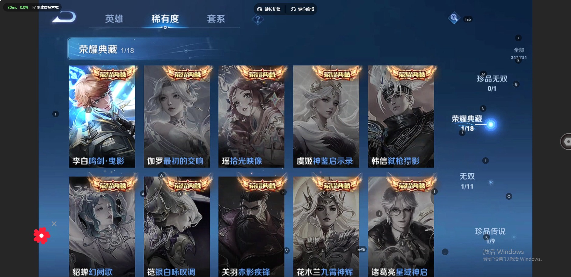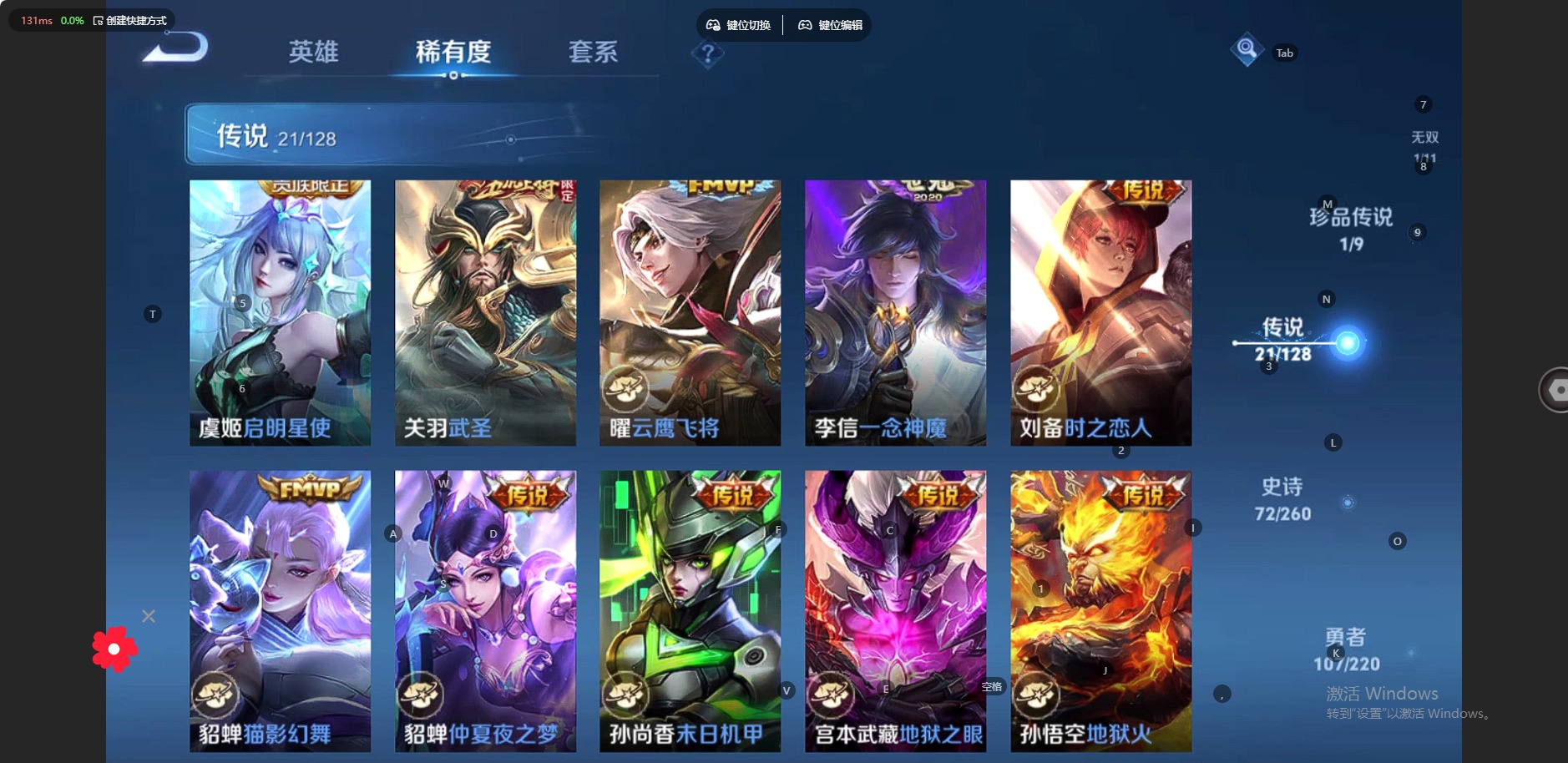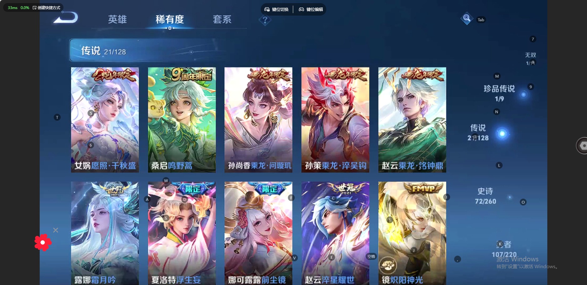 - [11600160]V9 4典藏 20传说 124英雄 294皮肤 可修改实名 优质装备:天鹅之梦(小乔典藏),无限飓风号(高达),鸣剑·曳影,星域神启(倪克斯贼亮),黄金狮子座,冠军飞将,云鹰飞将(小将军),久胜战神,一念神魔,地狱火,仲夏夜之梦(大飞蛾),音你心动-小乔,飞鸢探春,李逍遥,超时空战士-狄仁杰,无双飞将 珍宝阁皮:蔷薇恋人 限定皮:逐霄战戟,至尊宝,白虎志(电光耗子),凤求凰(白切鸡),凤凰于飞,武陵仙君(小桃花),寅虎·展翼(孙膑年限),时之彼端,白鹤梁神女,白晶晶,神威(电光马子),瑞麟志(木兰年限),遇见飞天,高山流水,五谷丰年,冰锋战神,游园惊梦,梁祝,逐梦之星,天狼溯光者,李小龙,逐梦之影,玄武志(苏烈年限),朱雀志(守约年限),永曜之星,辉光之辰,如梦令-嫦娥,天魔缭乱,青春决赛季,蜜橘之夏,时之祈愿-瑶(瑶传限),深海之息(深海大菠萝) 史诗皮:遇见神鹿,紫霞仙子,苍穹之光,电玩小子(小书包),白龙吟,黄金分割率,特工魅影,千年之狐,永昼,偶像歌手,暗夜猫娘,魅语,无限星赏官,晚萤,冰冠公主,青蛇,末日机甲-吕布,猫狗日记-孙策,猫狗日记-大乔,乱世虎臣,修罗,女仆咖啡,摇滚巨星,水果甜心,天才门将,心灵骇客,时之奇旅-安琪拉,功夫厨神,德古拉伯爵,暗隐猎兽者,幽灵船长,鬼剑武藏,心灵战警,舞动绿茵,地狱岩魂,拒霜思,缤纷独角兽,乘风破浪,逐浪之夏,水晶猎龙者,曙光守护者,热力回旋,金属风暴,原初追逐者,圣诞狂欢,圣诞恋歌,鹰眼统帅,魅力维加斯,黎明之约,赏金猎手,未来纪元-赵云