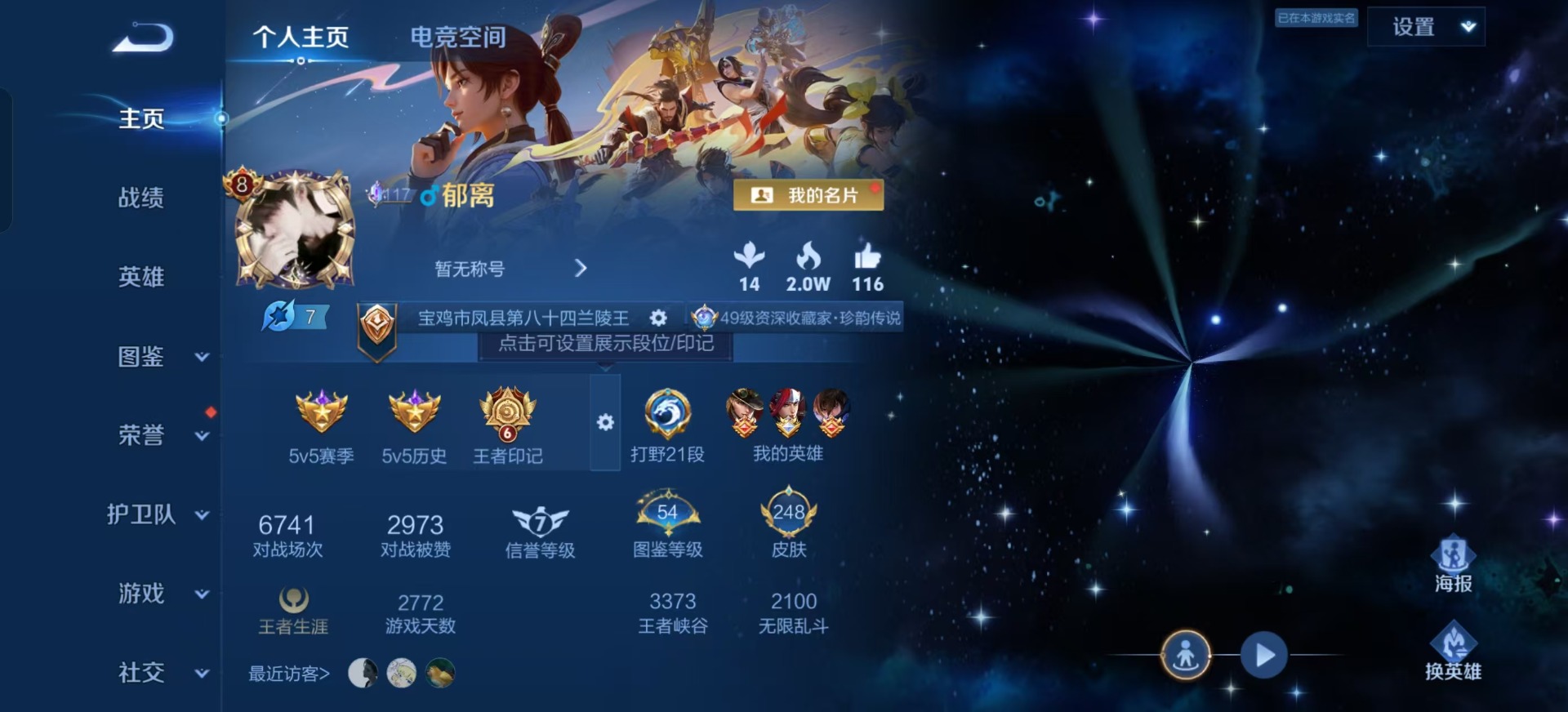 - [11432948]V7 1典藏 5传说 124英雄 240皮肤 可修改实名 优质装备:星域神启(倪克斯贼亮),黄金白羊座,地狱火,时之恋人-刘备(电焊工) 珍宝阁皮:蔷薇恋人,女武神 限定皮:鸣野蒿,至尊宝,异界灵契(白毛香),瑞麟志(木兰年限),高山流水,匿光决锋者,五谷丰年,冰锋战神,岱宗(典韦年限),天狼溯光者,李小龙,孙行者,猪悟能,寅虎·御盾(廉颇年限),百木心枪 史诗皮:百相守梦-百里守约,百相守梦-黄忠,紫霞仙子,苍穹之光,特工魅影,永昼,偶像歌手,龙骑士(小龙虾),暗夜猫娘,冰冠公主,末日机甲-吕布,猫狗日记-孙策,节奏热浪,修罗,女仆咖啡,摇滚巨星,水果甜心,星夜王子,功夫厨神,暗隐猎兽者,幽灵船长,鬼剑武藏,心灵战警,天秀·启明,繁星吟游(呼啦呼啦),拒霜思,乘风破浪,逐浪之夏,水晶猎龙者,曙光守护者,圣诞恋歌,鹰眼统帅,魅力维加斯,赏金猎手,寅虎·御盾,未来纪元-赵云