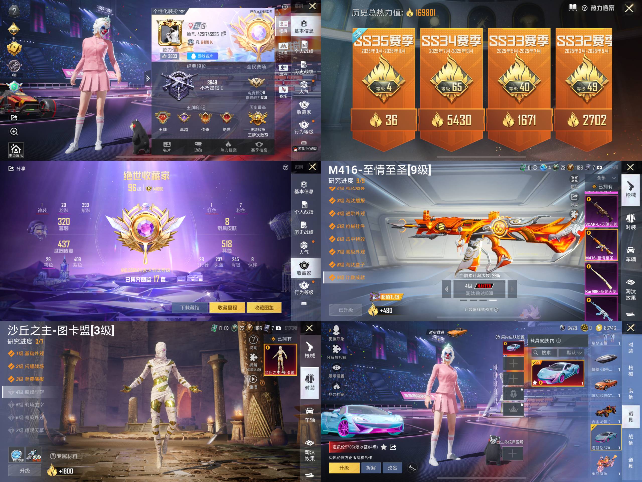 GROZA-林间仙鹿,M762-瑞龙福将,Mk47-林间仙鹿,SCAR-L-粉色回忆,M24-香水柠檬,M416-黄金龙骨,AWM-黄金龙骨
